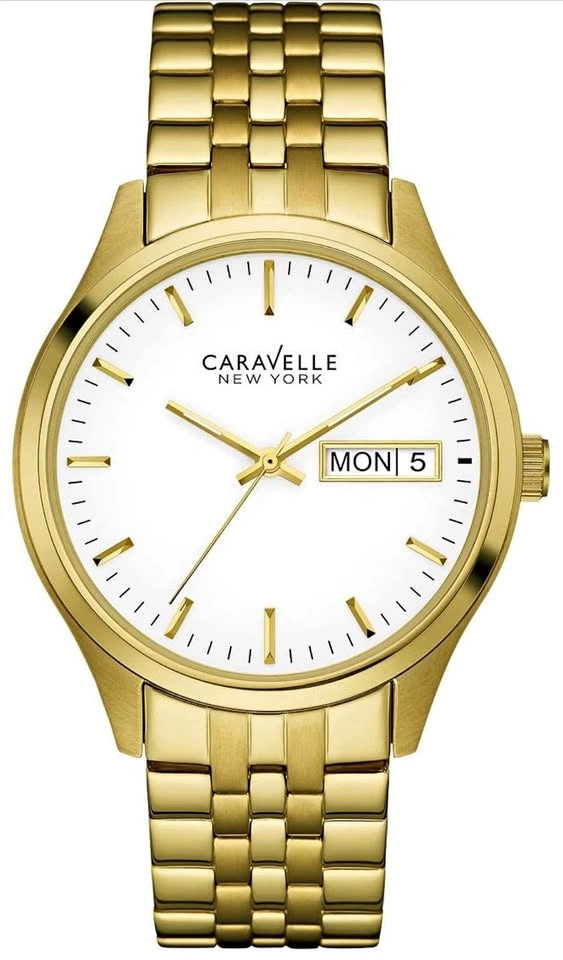 Caravelle New York White Dial Yellow Gold Stainless Steel Men's Watch, 41mm, #44C106