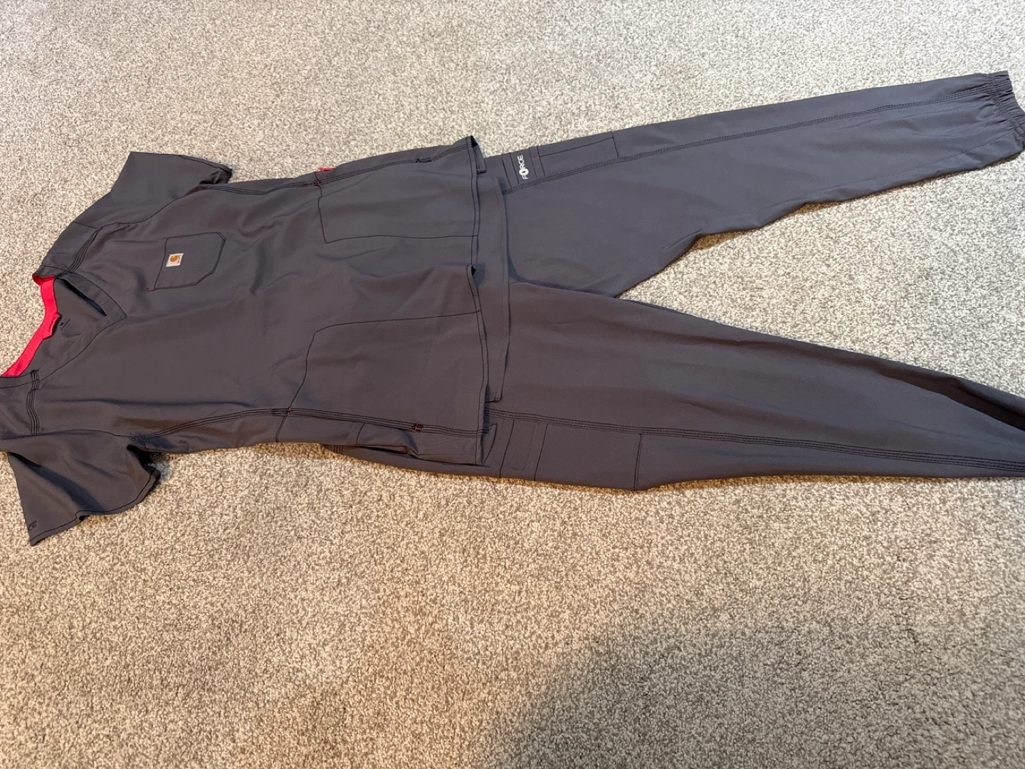Selling a Carhartt Force scrub set in a nice grey colour! Brand new! Never worn! The set includes both the top and the pants. It's in great condition and ready for a new home! Perfect for anyone in the medical field or other professions requiring scrubs