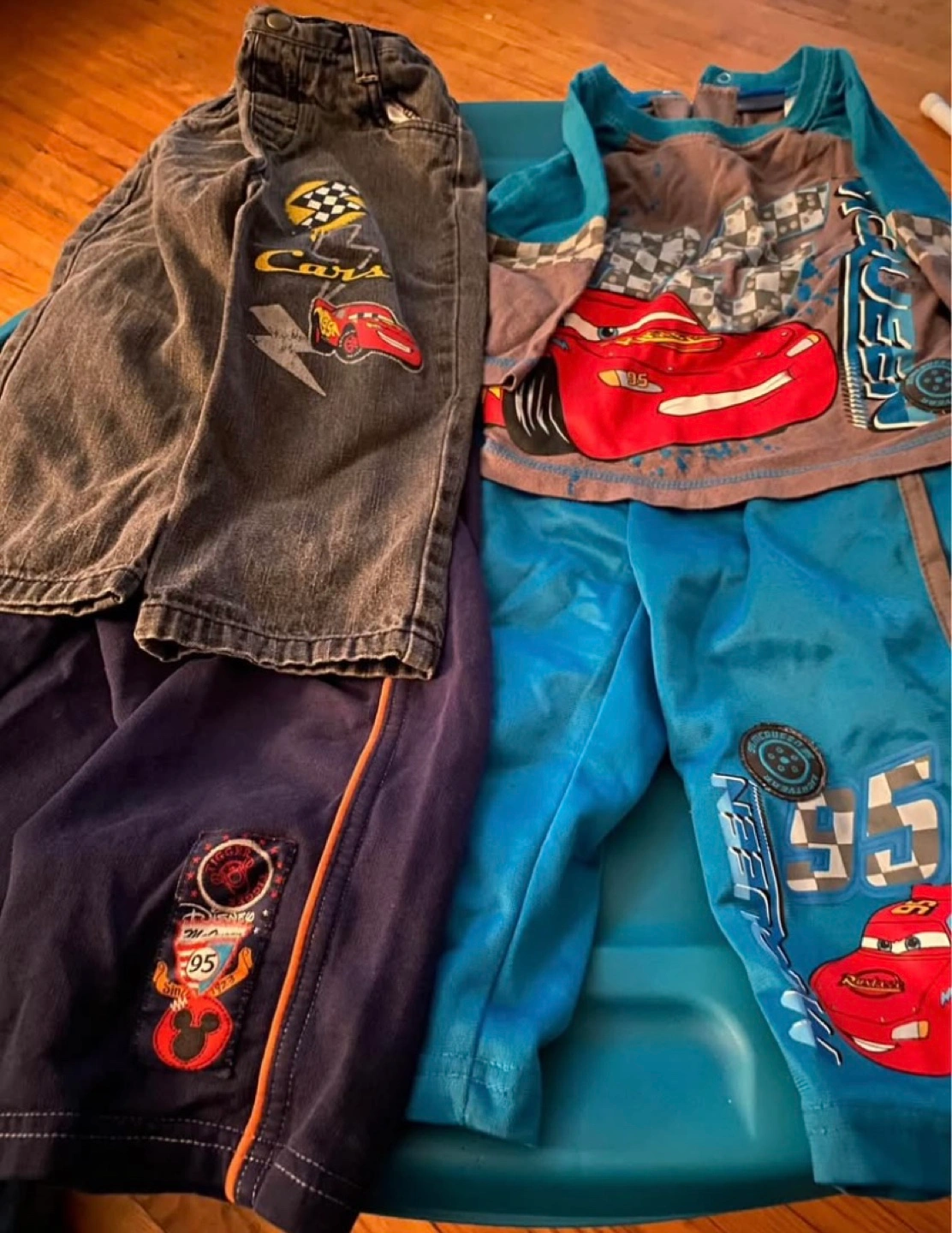 Boy's three-piece outfit. Includes jeans, a Cars T-shirt and coordinating pants. No delivery. No holds. As is, no refunds. Price is firm. Size 18 months