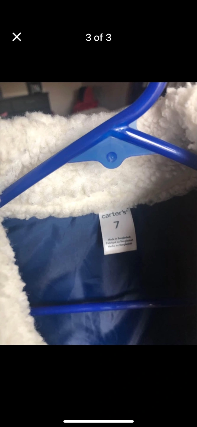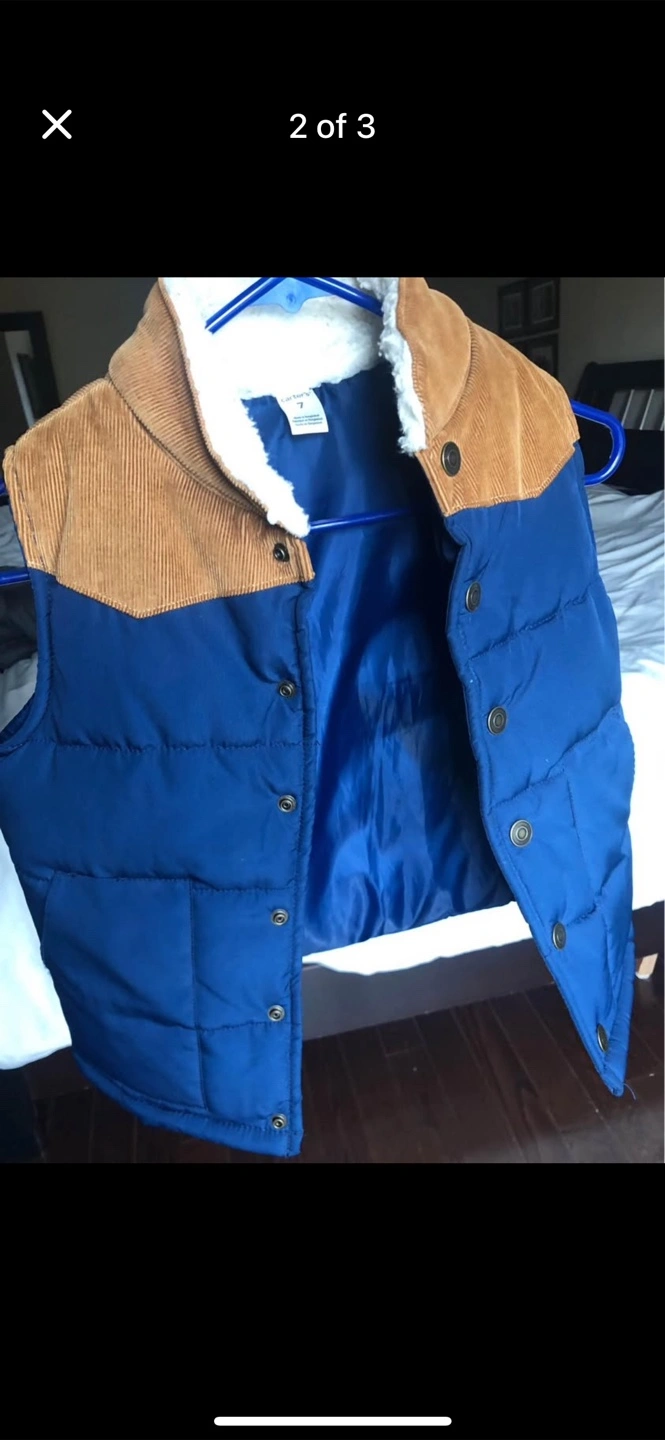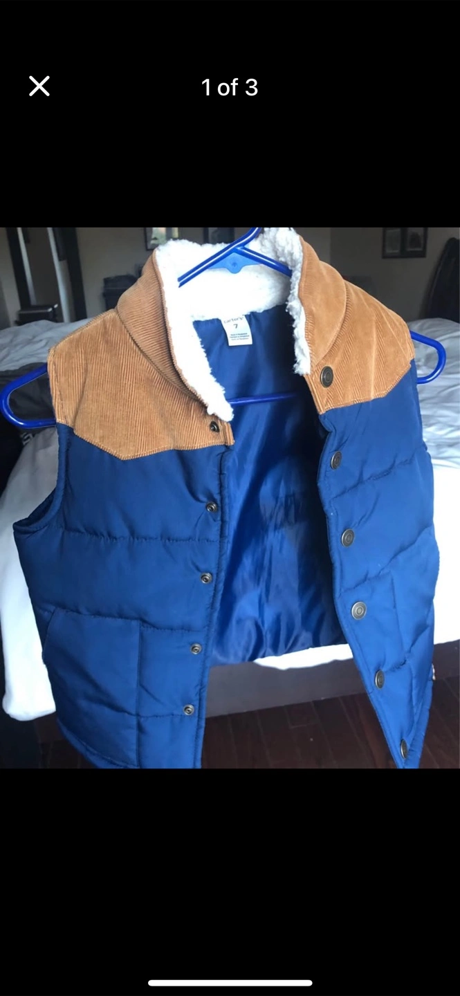 Here's a Carter's vest in size 7! It's blue with a brown corduroy top and a cozy white sherpa lining