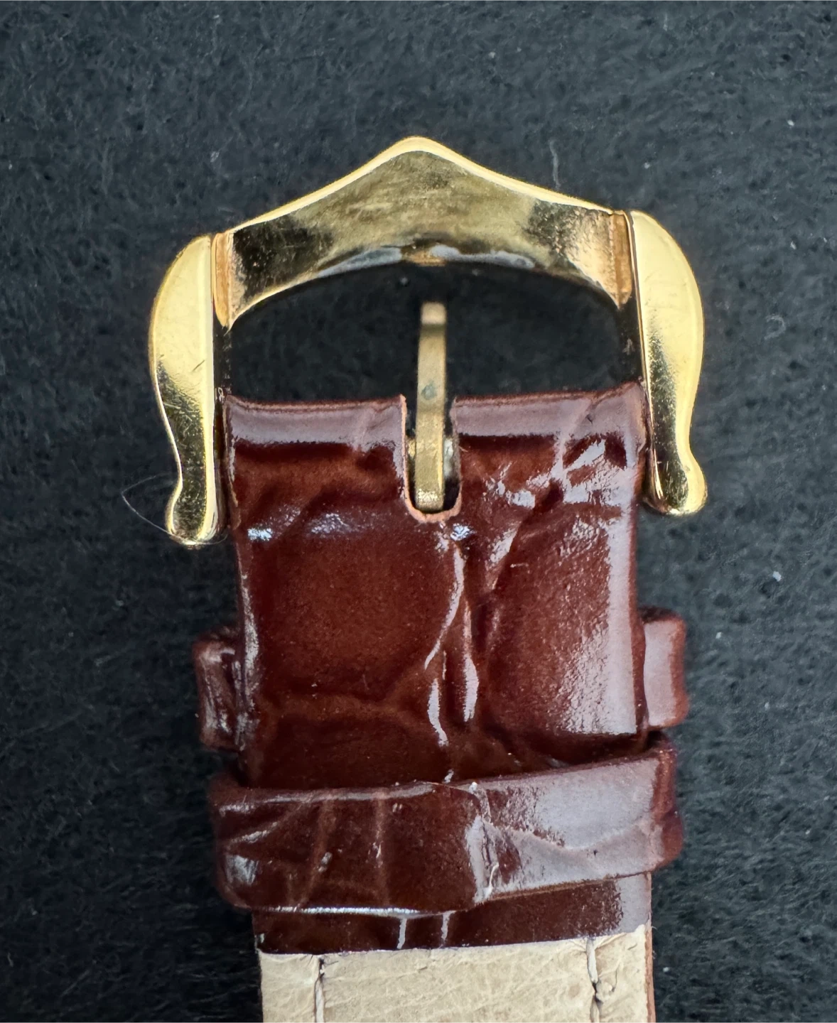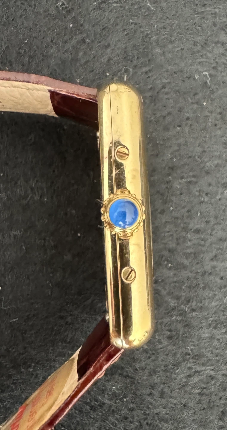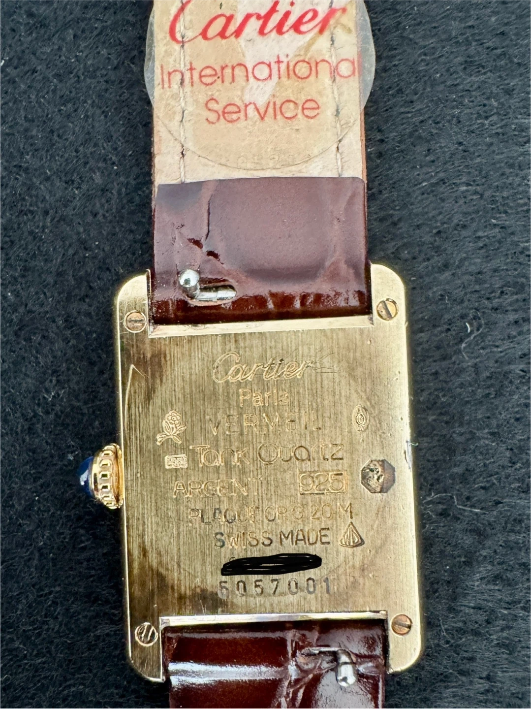 Selling a Cartier Must de Tank Quartz Vermeil watch! It features a gold-plated silver case and a brown leather strap. The watch has a classic and elegant design, perfect for any occasion! It's in great condition and ready to wear