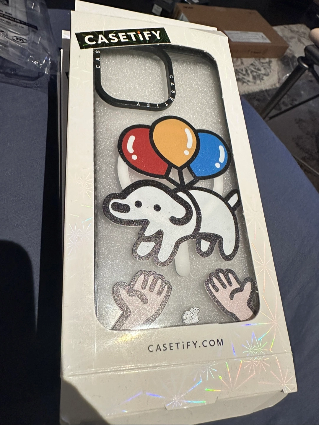 Casetify phone case featuring a cute dog holding balloons design! It comes in the original box and is in excellent condition Matsui Brand new