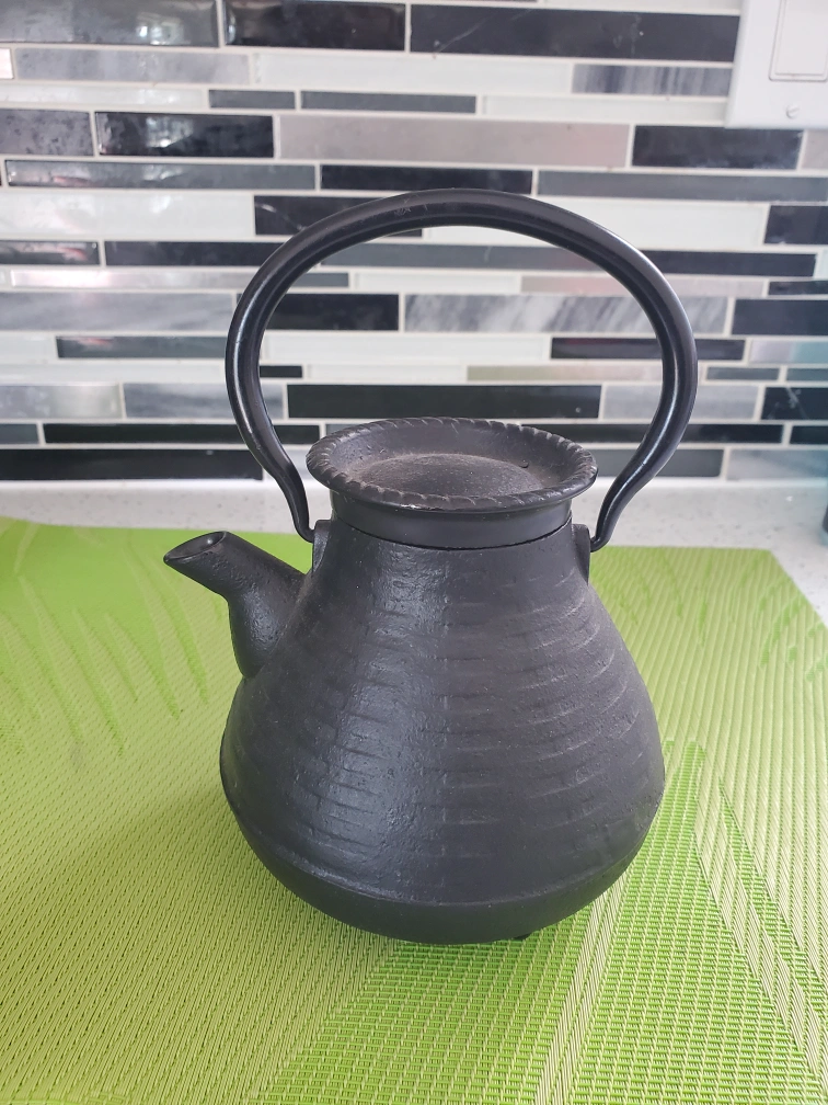 I'm selling a cast iron tea kettle. It's in great condition and ready for your favourite tea! It includes a stainless steel mesh infuser for loose leaf tea
