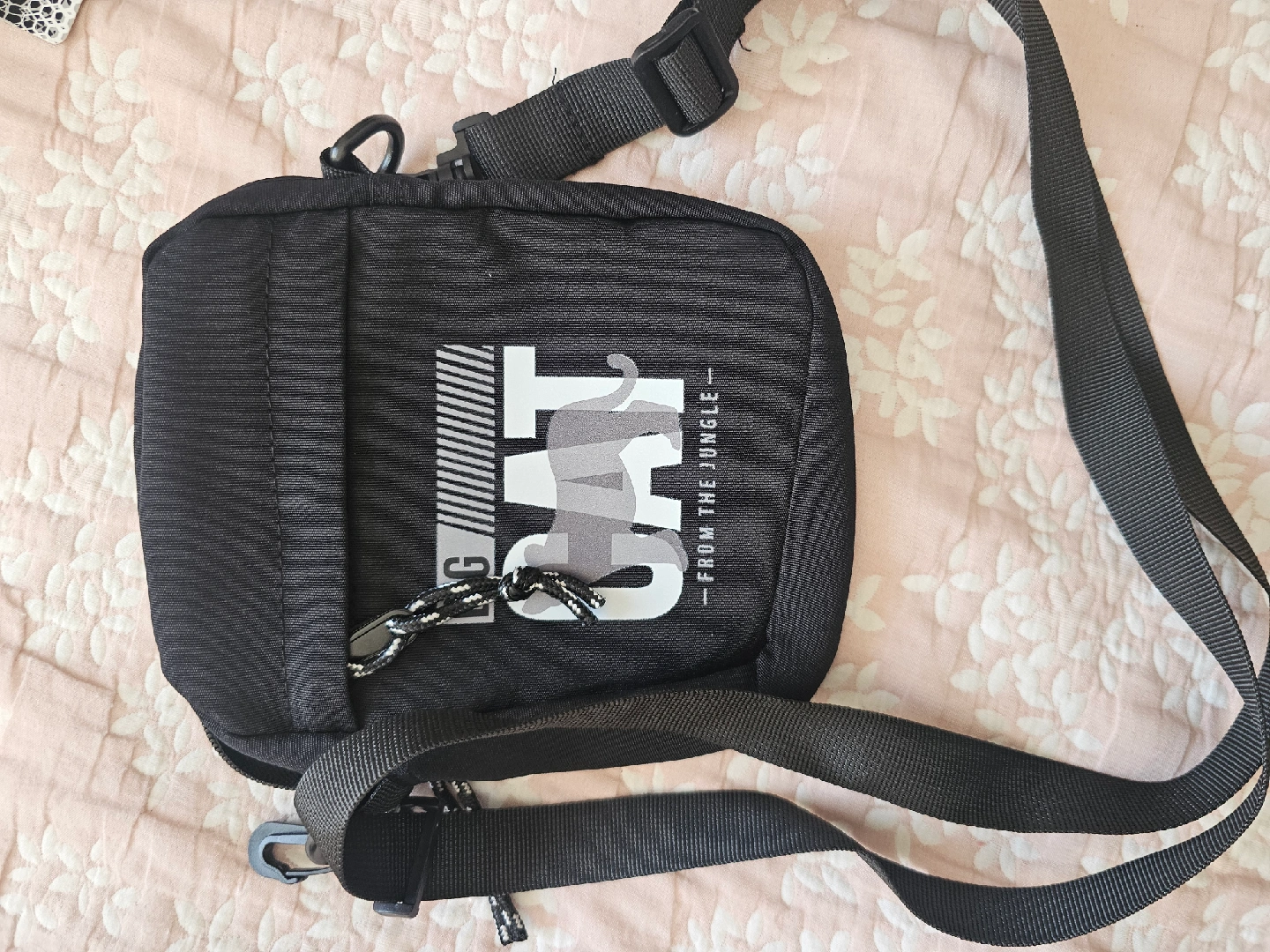 crossbody bag in black and perfect for carrying your essentials! Features a cool logo design. It's lightweight and easy to carry around