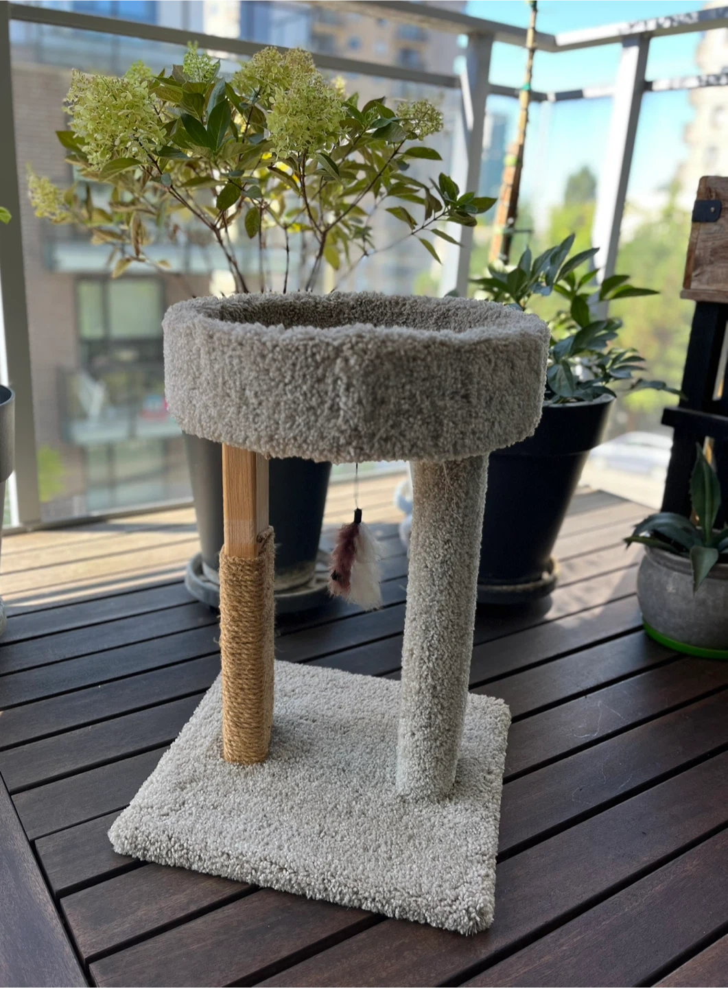 Selling a cat scratching post/tree in a neutral colour. It's in great shape and ready for a new feline friend! Perfect for keeping your cat entertained and their claws healthy. It features a scratching post wrapped in rope ( some rope needs replacing) and a comfy spot for your cat to relax