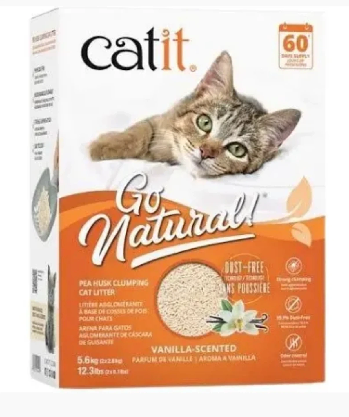 Selling a 5.6kg box of Catit Go Natural cat litter. This is a pea husk clumping cat litter that's vanilla-scented. It's dust-free, offers strong clumping and odor control. Good for about 60 days of supply!