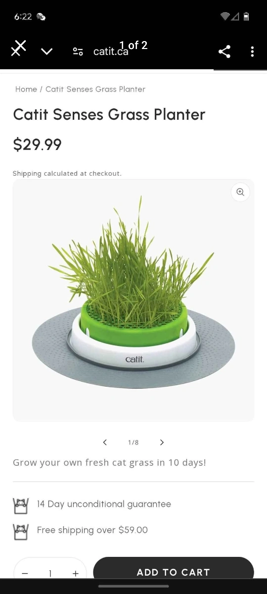 I'm selling a Catit Senses Grass Planter! Grow your own fresh cat grass in 10 days. It also comes with a 14-day unconditional guarantee