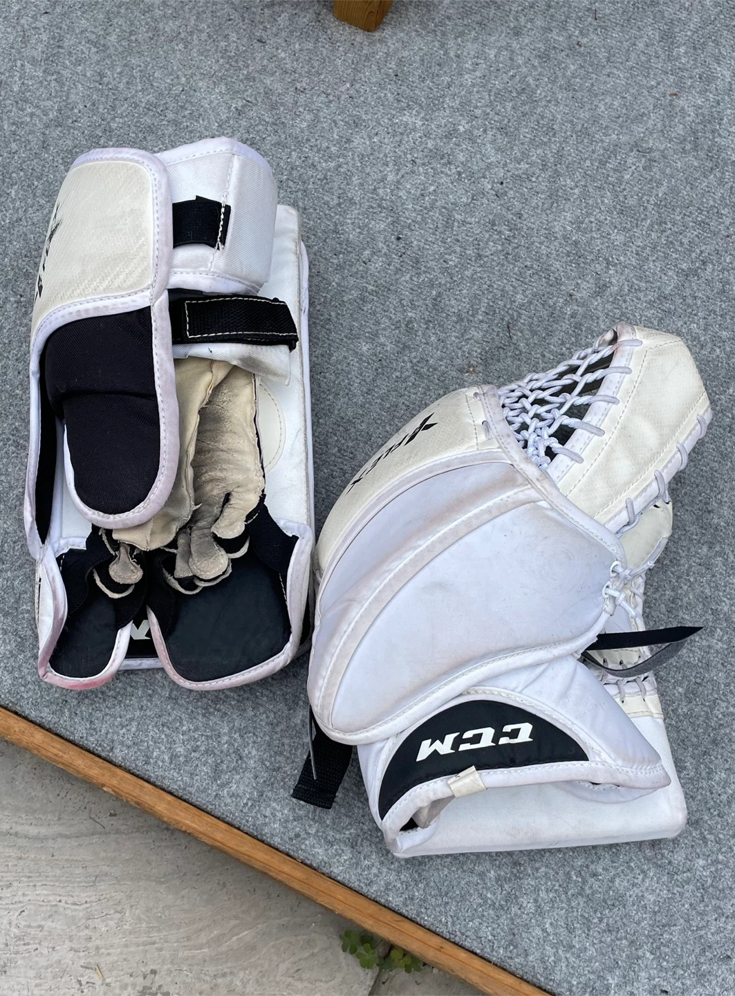 Selling a CCM hockey goalie glove and blocker set! They show signs of use, but still have lots of life left in them for practices or games