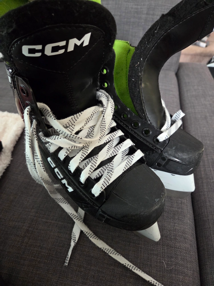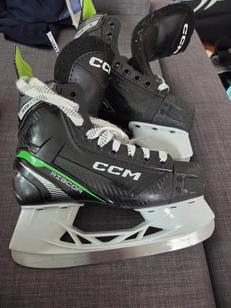 Selling a pair of CCM Ribcor ice hockey skates. They are a US size 2. These skates have been used, but still have plenty of life left in them. Perfect for a young player just starting out!