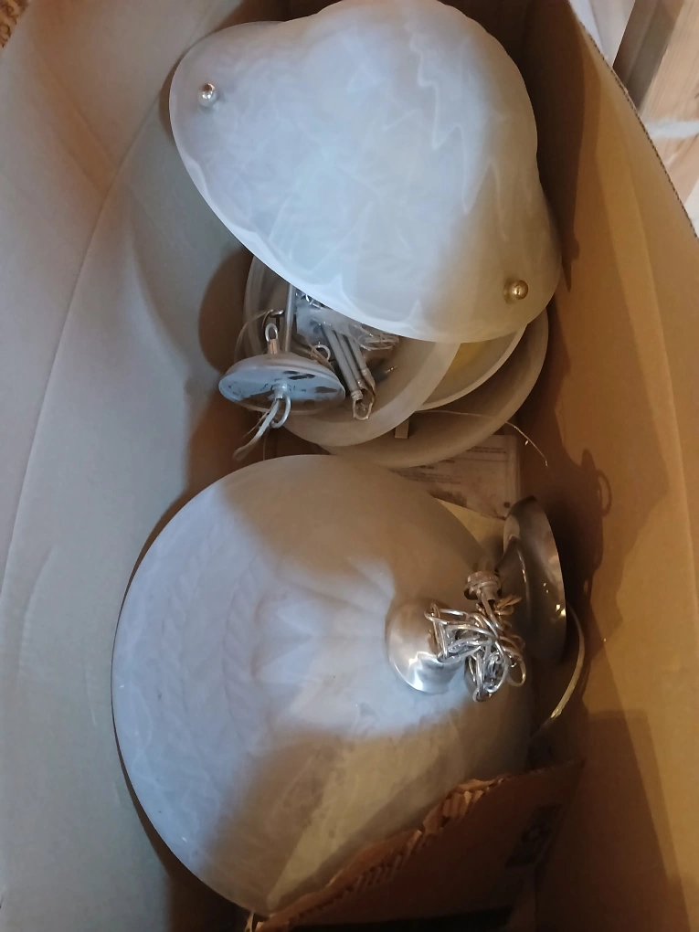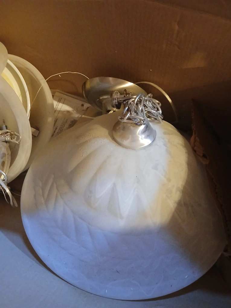 Selling a set of three ceiling light fixtures. They are in good condition and ready to brighten up your space! The shades are a frosted glass, giving a soft and diffused light. Perfect for any room in the house