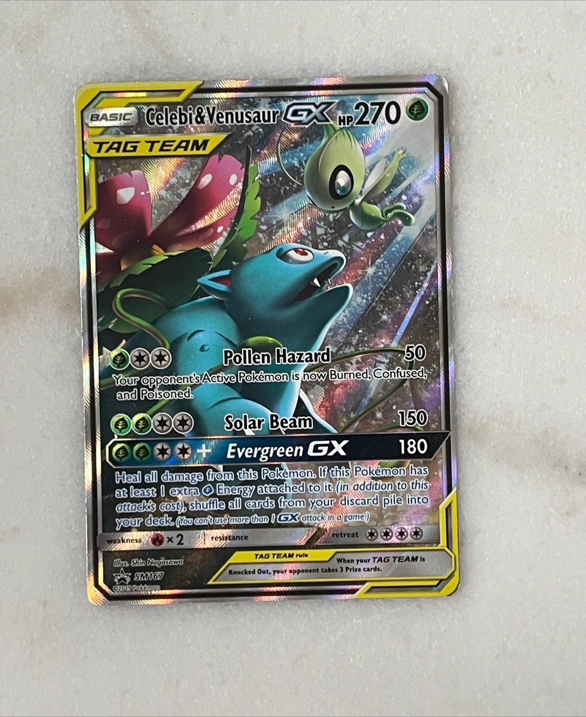 Selling a Celebi & Venusaur GX Tag Team Pokemon card. It's in great condition!