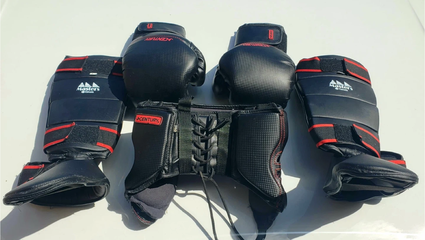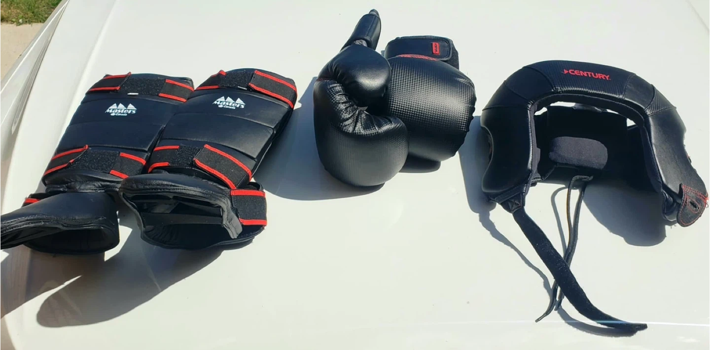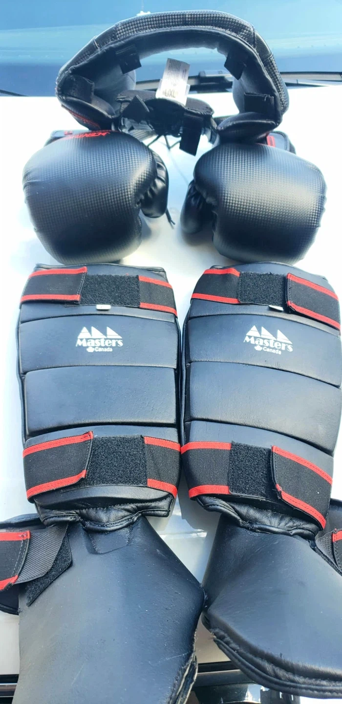 Get ready to spar with this complete set of Century and Masters sparring gear! Includes headgear, gloves, and shin guards, all in good condition. Perfect for martial arts training and practice