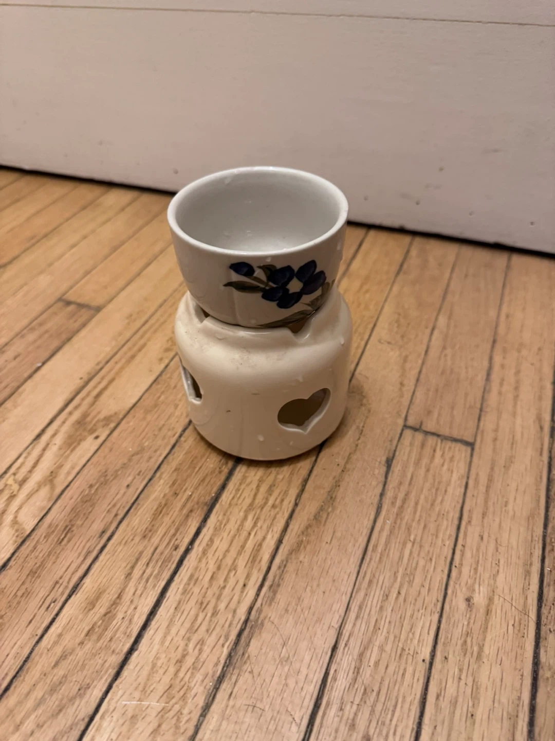 Ceramic Oil Warmer with Heart Cutouts Price 5$ Cash only Pickup Broadway Near Fort Garry Hotel ( Front of Building at 90 Garry) Any time just call or message before pickup PSF Tel 2048811332 If add there means still available Pls see my other add thanks