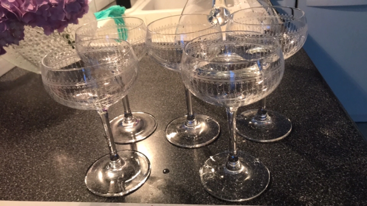 ….Selling a set of 4 coupe glasses and a matching glass pitcher. Perfect for entertaining or adding a touch of elegance to your home bar Pick up location is 10 Alcorn Avenue M4v1e4