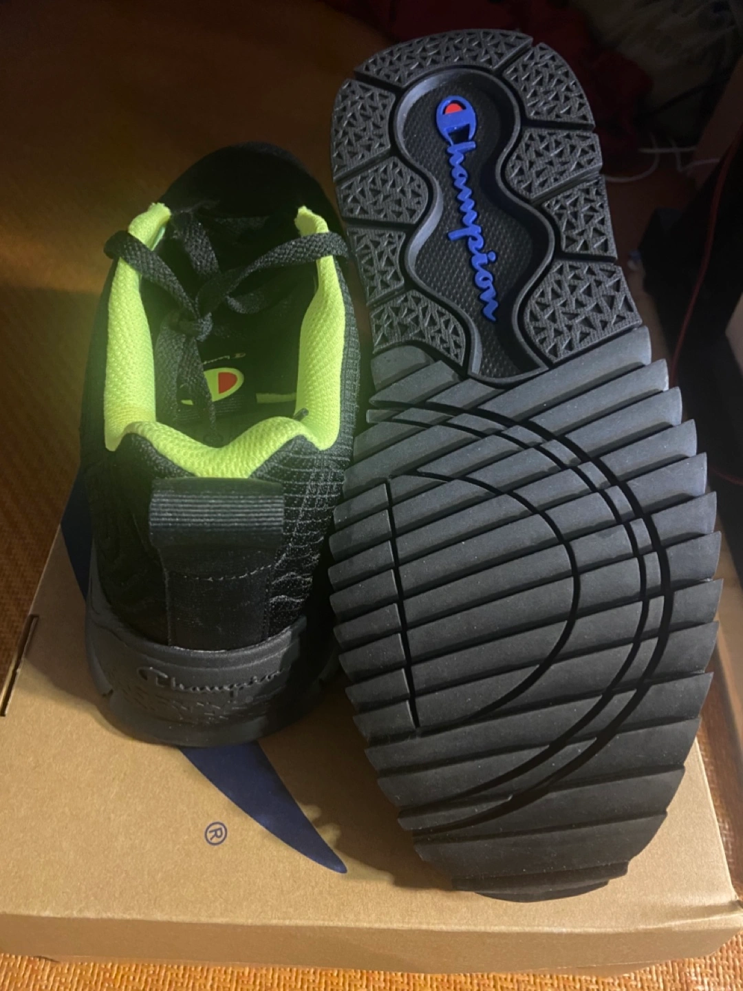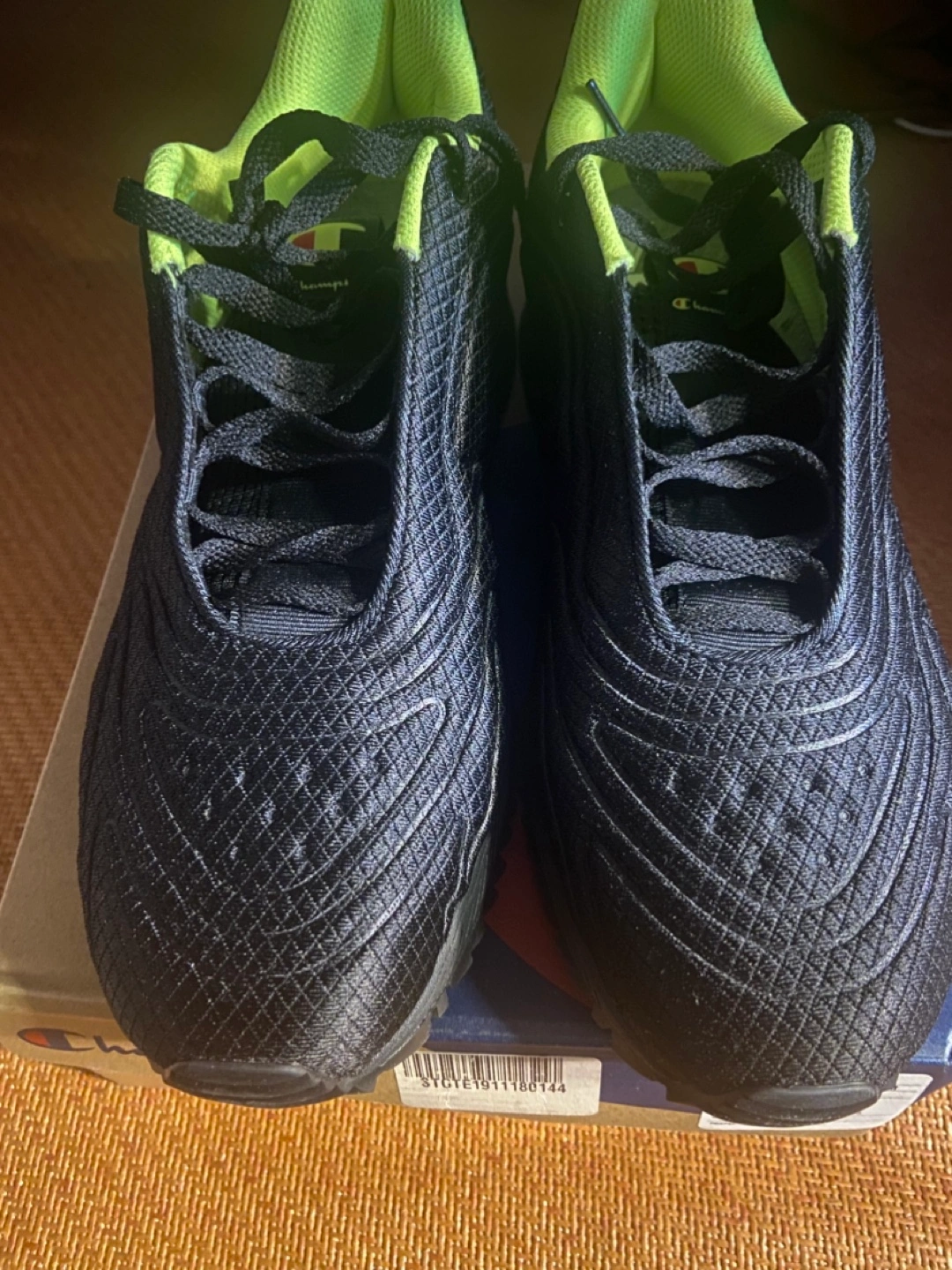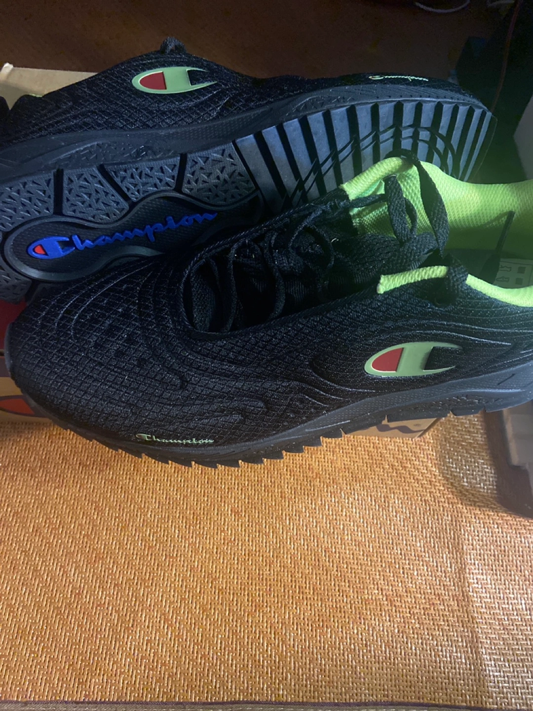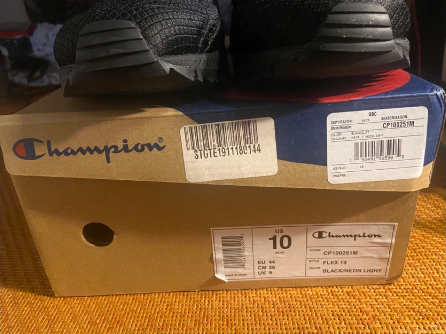 Selling a pair of Champion Flex 19 shoes in size US 10. The colours are black and neon light. Comes with the original box New. Never worn. Too many shoes