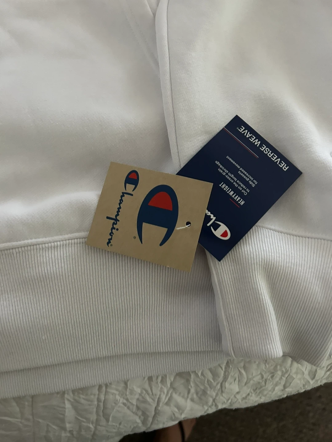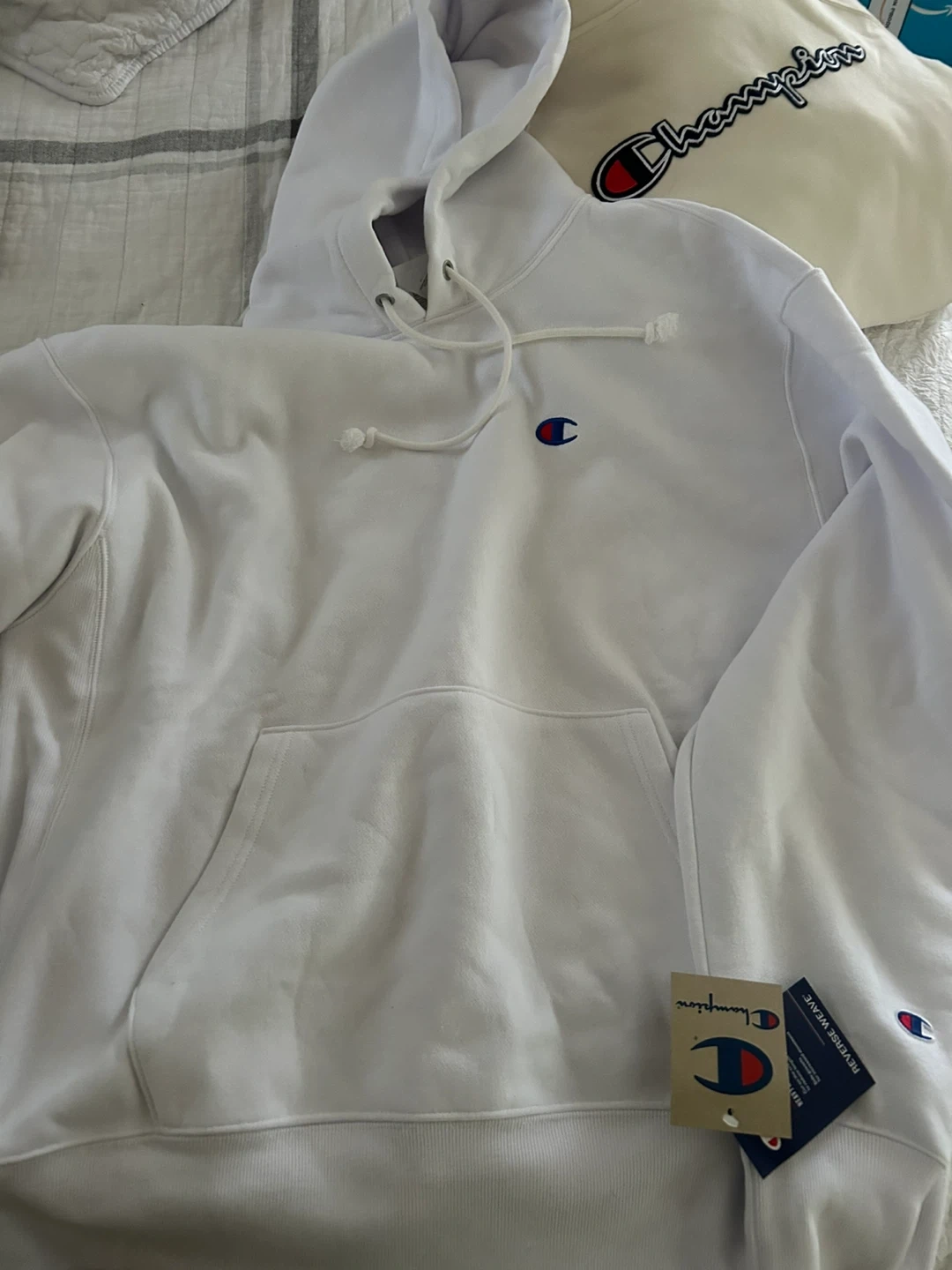 Selling a brand new Champion Reverse Weave Pullover Hoodie in white, size XL! It's super comfy and has that classic Champion look. Originally bought for $85.13, it's still got the tags on it. Perfect for staying cozy this season