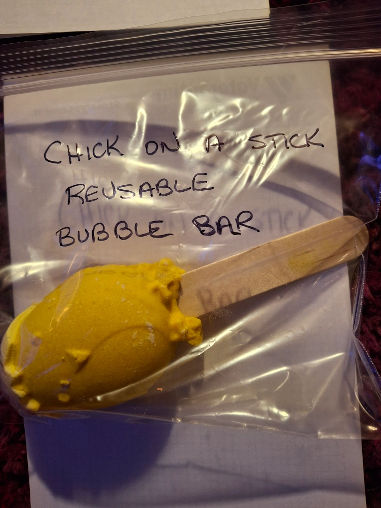 Selling a Chick On A Stick reusable bubble bar! It's yellow and looks like a popsicle. Great for a fun bath time