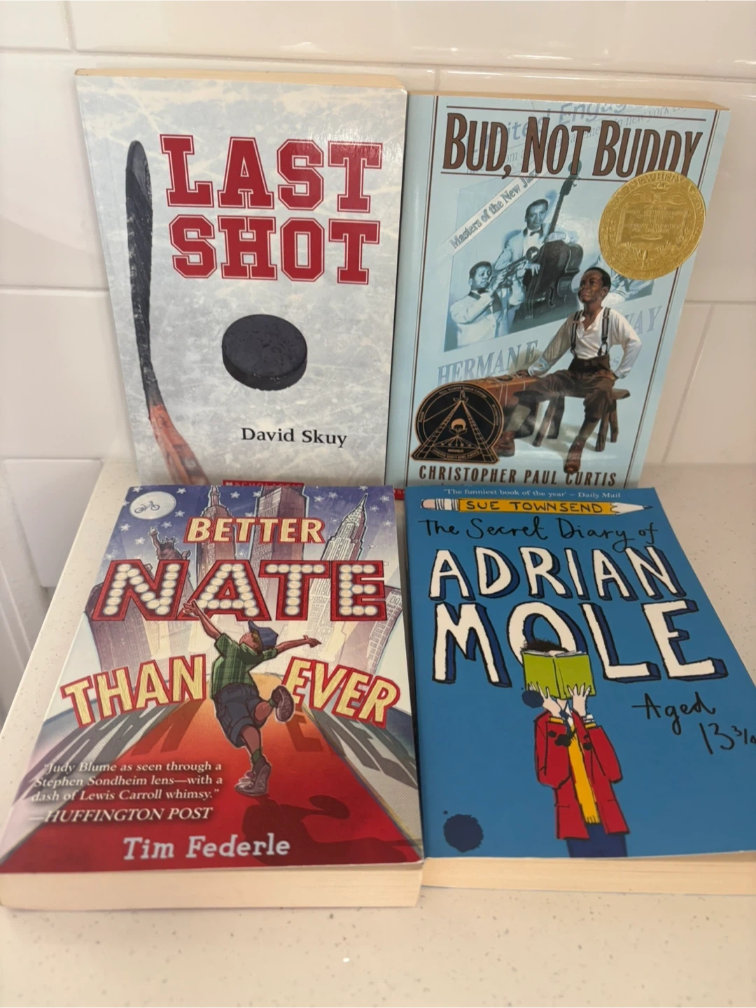 Selling a collection of children's books! Includes: - Last Shot by David Skuy - Bud, Not Buddy by Christopher Paul Curtis - Better Nate Than Ever by Tim Federle - The Secret Diary of Adrian Mole by Sue Townsend