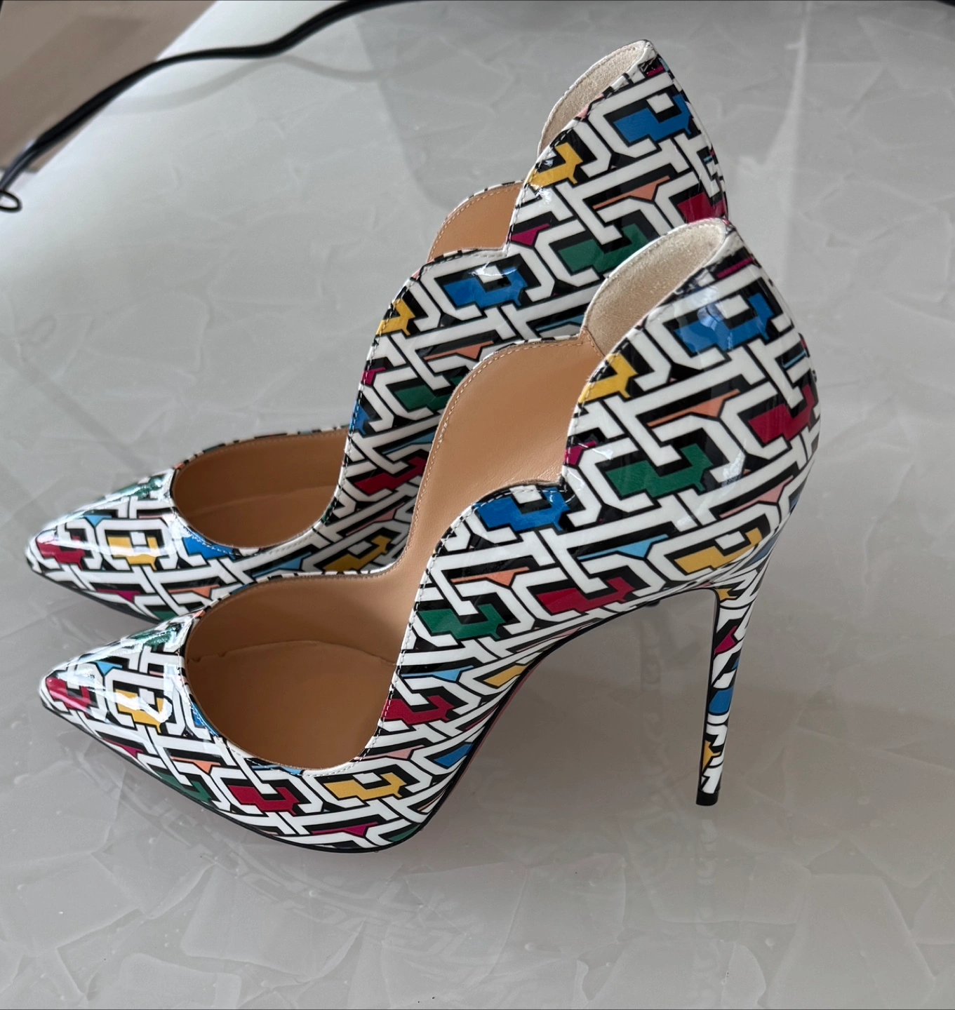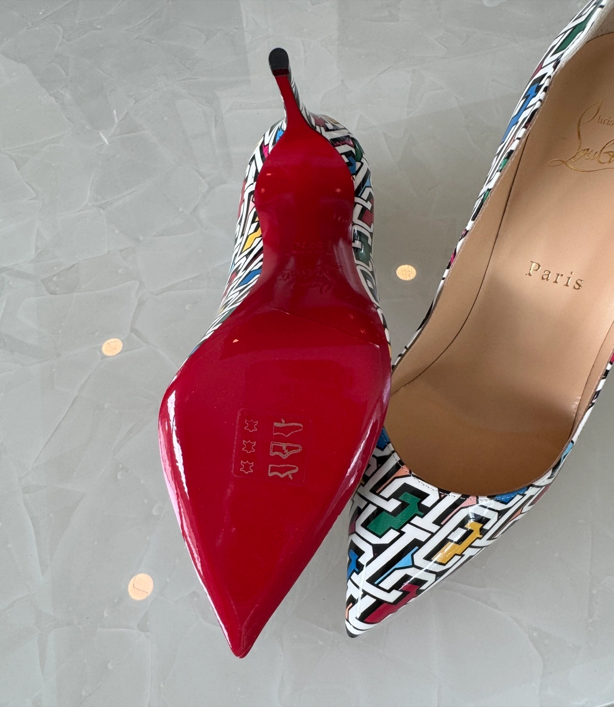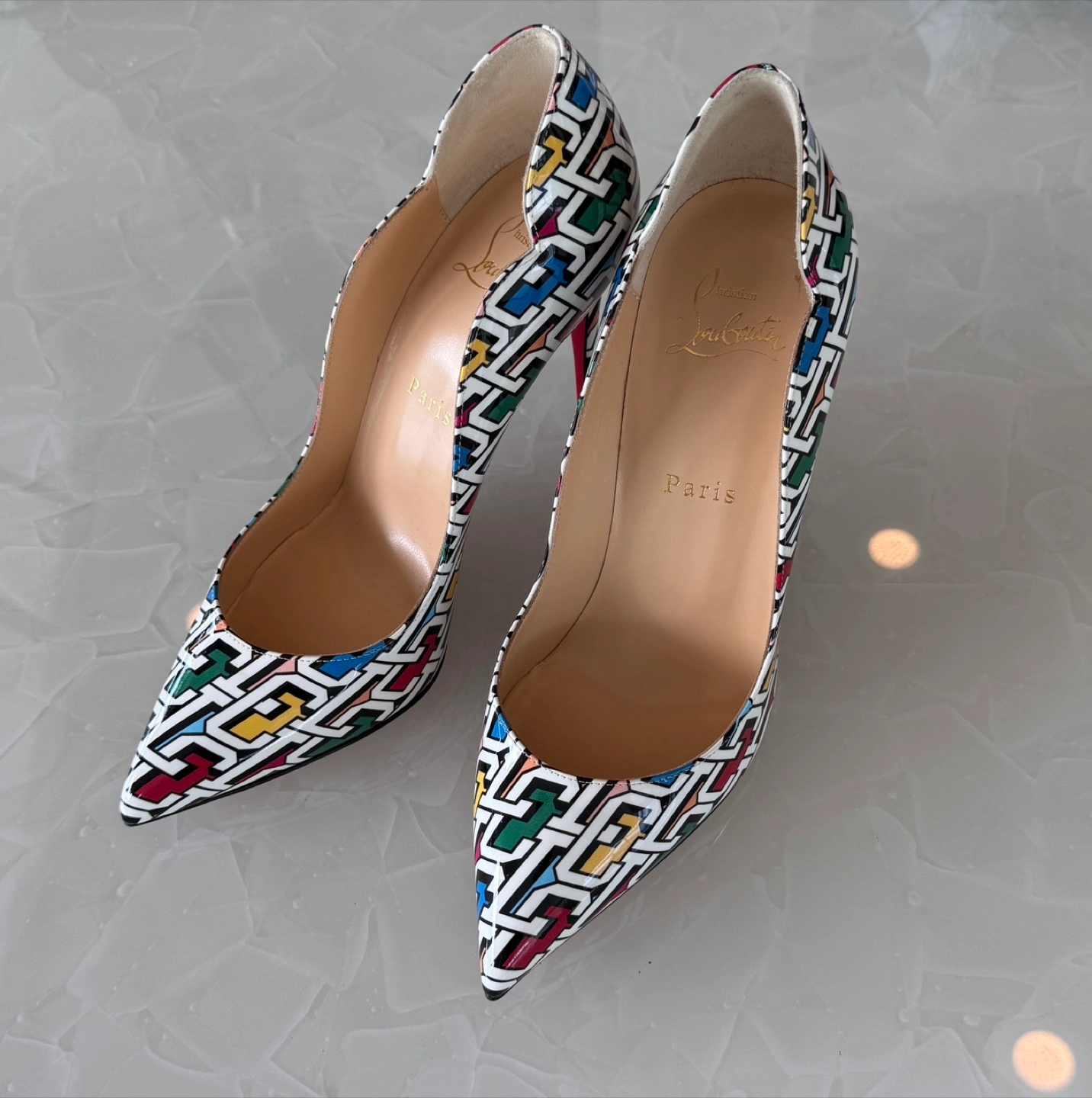 *NEVER WORN *These Christian Louboutin heels feature a unique geometric print. The iconic red soles are a signature touch
