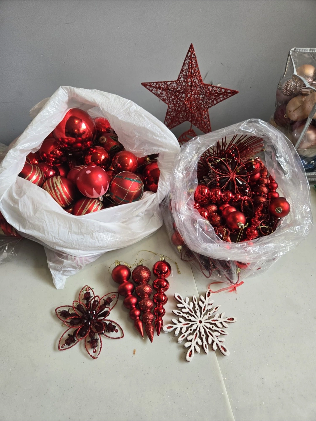 Selling a bundle of Christmas decorations! Includes a variety of ornaments, floral arrangements, and a 'Merry Christmas' tree skirt. Perfect for getting into the holiday spirit! Pick up in Orléans