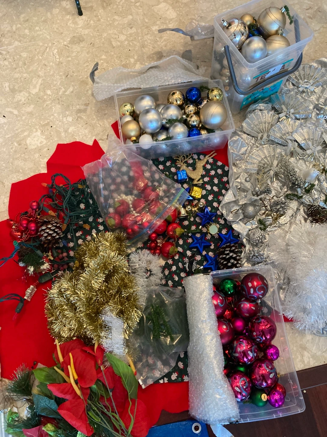 Selling a mixed coloured Christmas ornaments and decorations. Includes various styles, colours, and sizes. Perfect for adding some festive cheer to your home this holiday season!