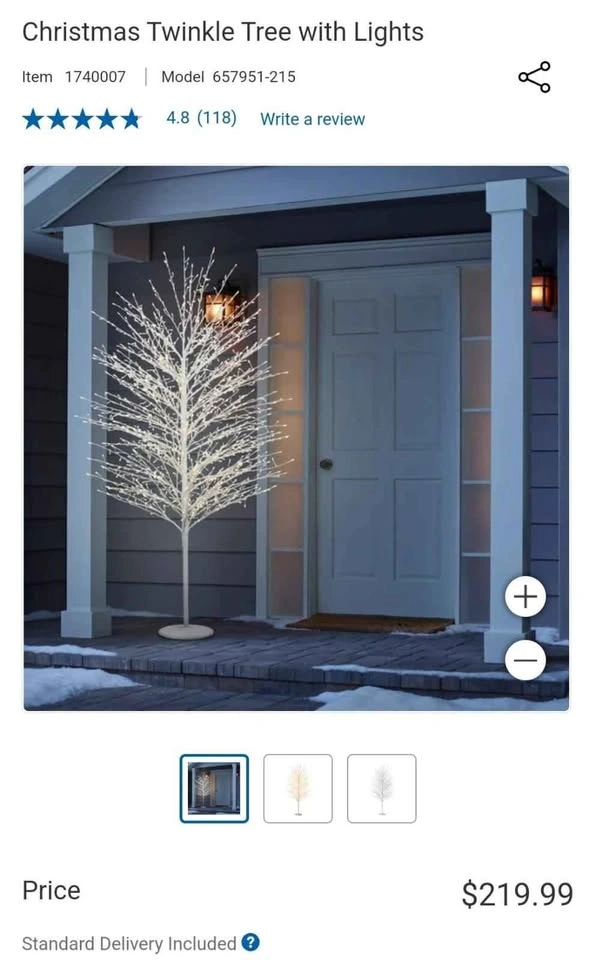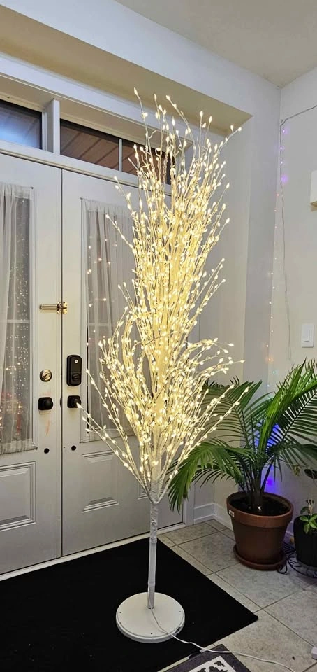 1280 Warm White LED lights Height 2.13 m (7ft.) Timer: (6h on/ 18h off) Indoor / Outdoor Branches are not fully streched before photo. Pick up available in Caledonia and Hamilton.