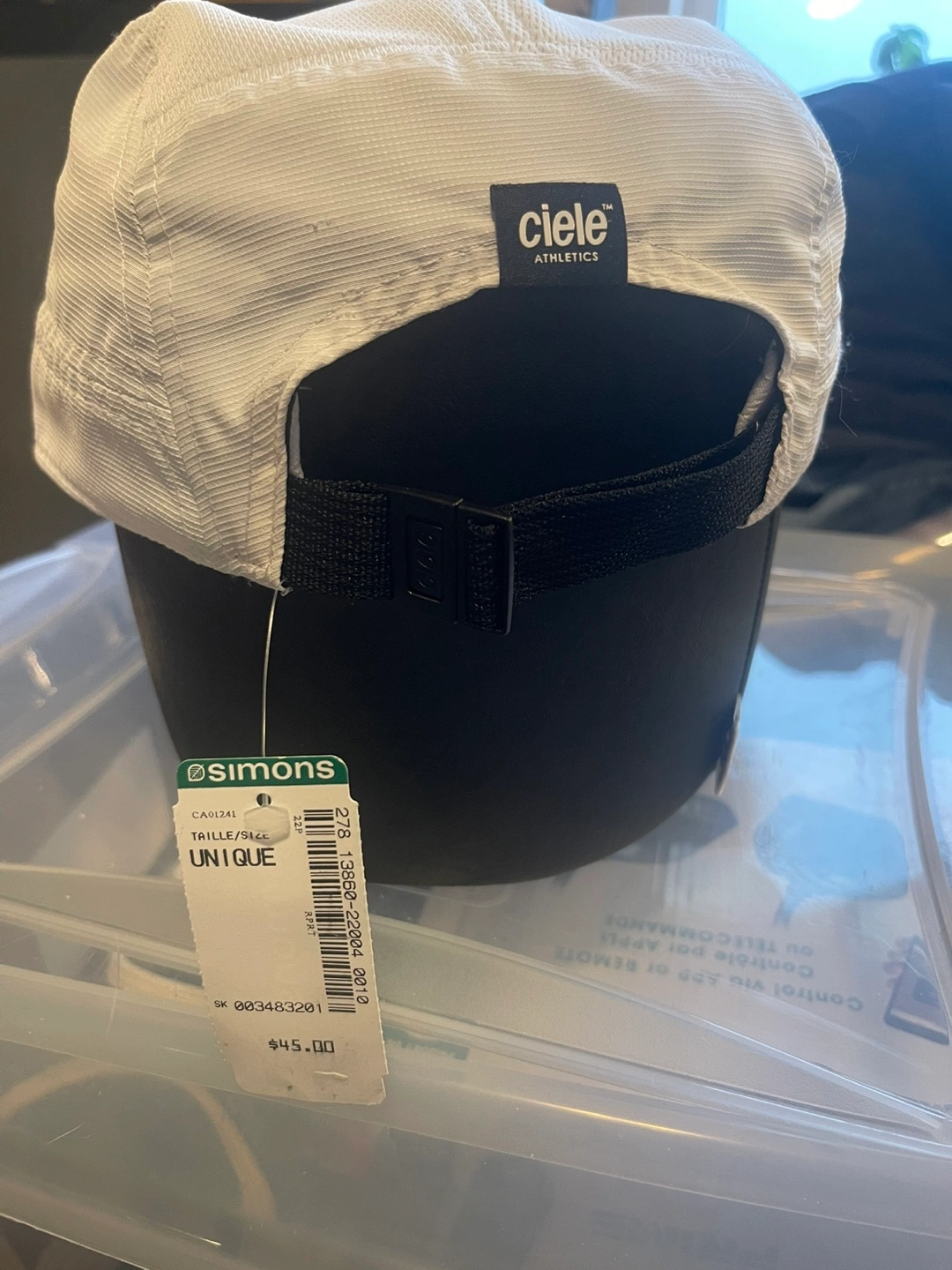 New with the tag still on. Size: 58 cm Color: Ghost (white) - lightweigh, fast-drying performance-ready COOLmatic™ fabric and Repreve recycled performance fiber. - 100% recycled polyester. - UPF +40 protection on the brim, front panel and back panel. - machine washable. - pliable SOFTflat brim for easy packability. - reflective detailing for night run visibility. - ciele athletics™ million miles guarantee. - 5 panel fit. 58 cm. adjustable. one size fits most. - weight 54 grams. - designed for people who run. 🚚 FREE delivery within Dartmouth if you get two or more of my items. See my other listings. Meetup Sobeys Wyse Rd or Zatzman Sportsplex right next to Bridge Terminal https://ca.cieleathletics.com/products/gocap-athletics-ghost-og