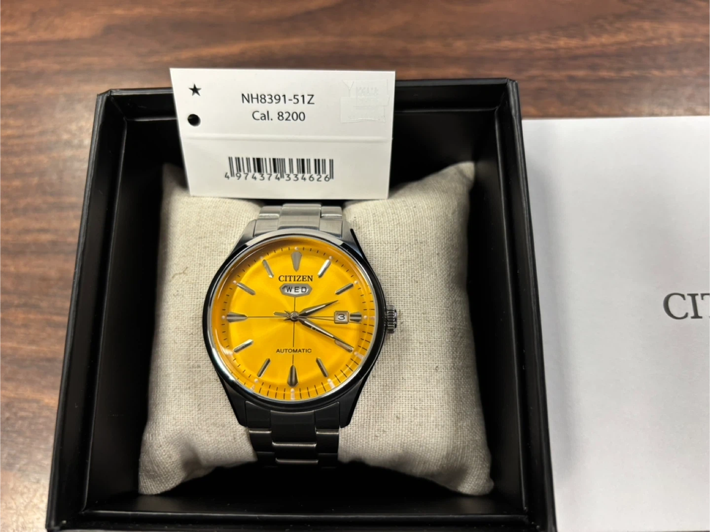 Citizen NH8391-51Z automatic watch with a vibrant yellow dial. Model: NH8391-51Z Caliber: 8200 It comes with its original box