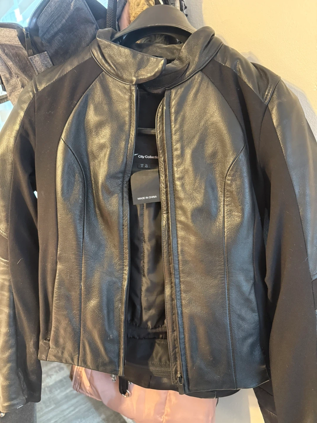 Selling a City Collection leather jacket in size 42. It's in great condition and ready for a new home! The jacket features a stylish design with leather and fabric panels.