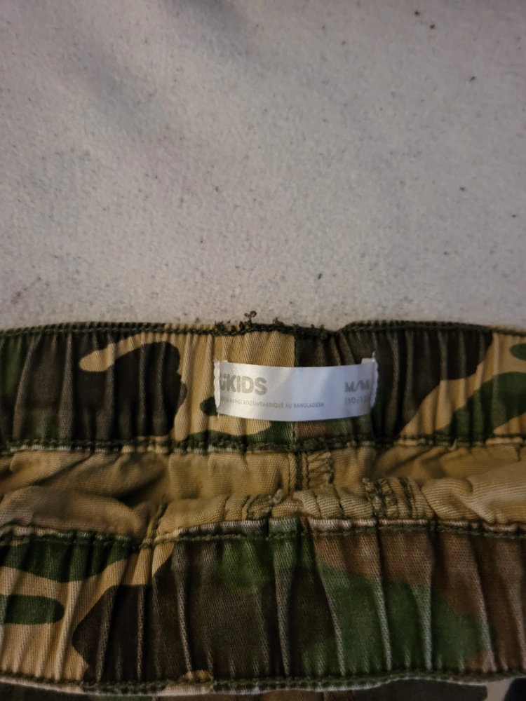 Selling a pair of CKIDS cargo pants in size M/M (10/12). One pair is camouflage and the other is green. Perfect for your kiddo!