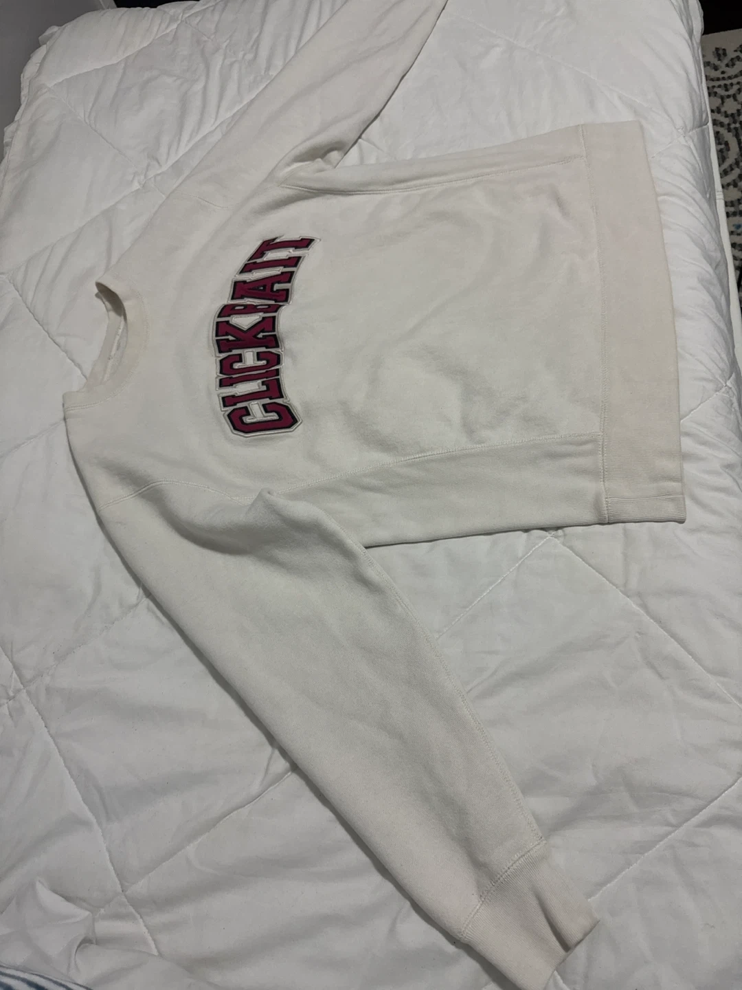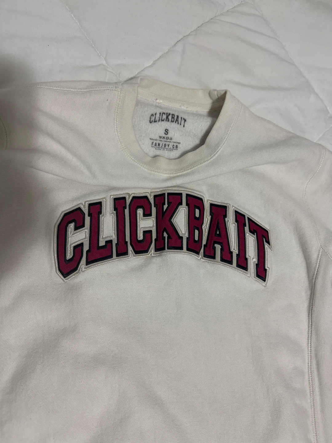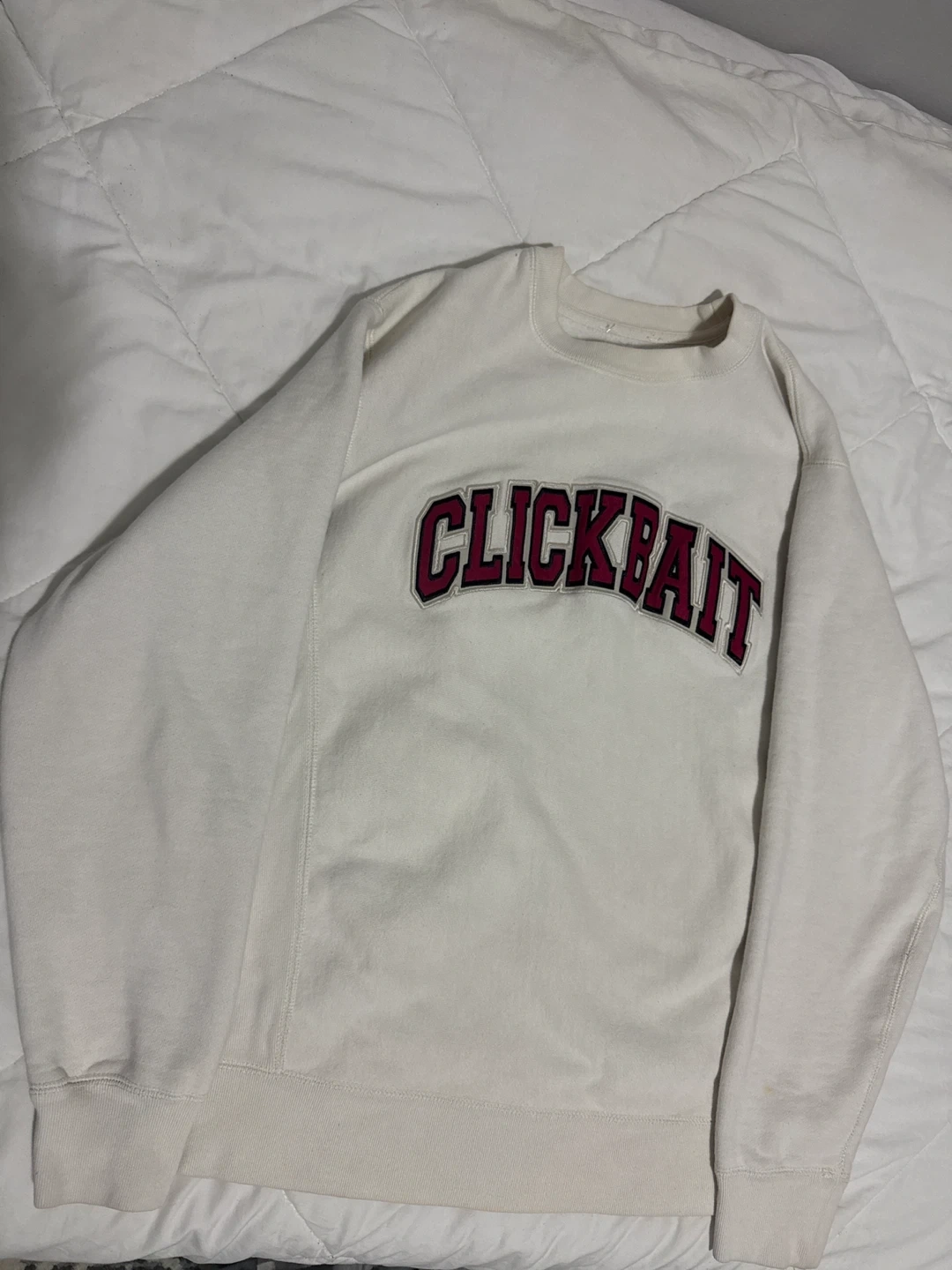 Selling a cream-coloured Clickbait cropped sweatshirt in size small! It's in great condition and perfect for casual wear