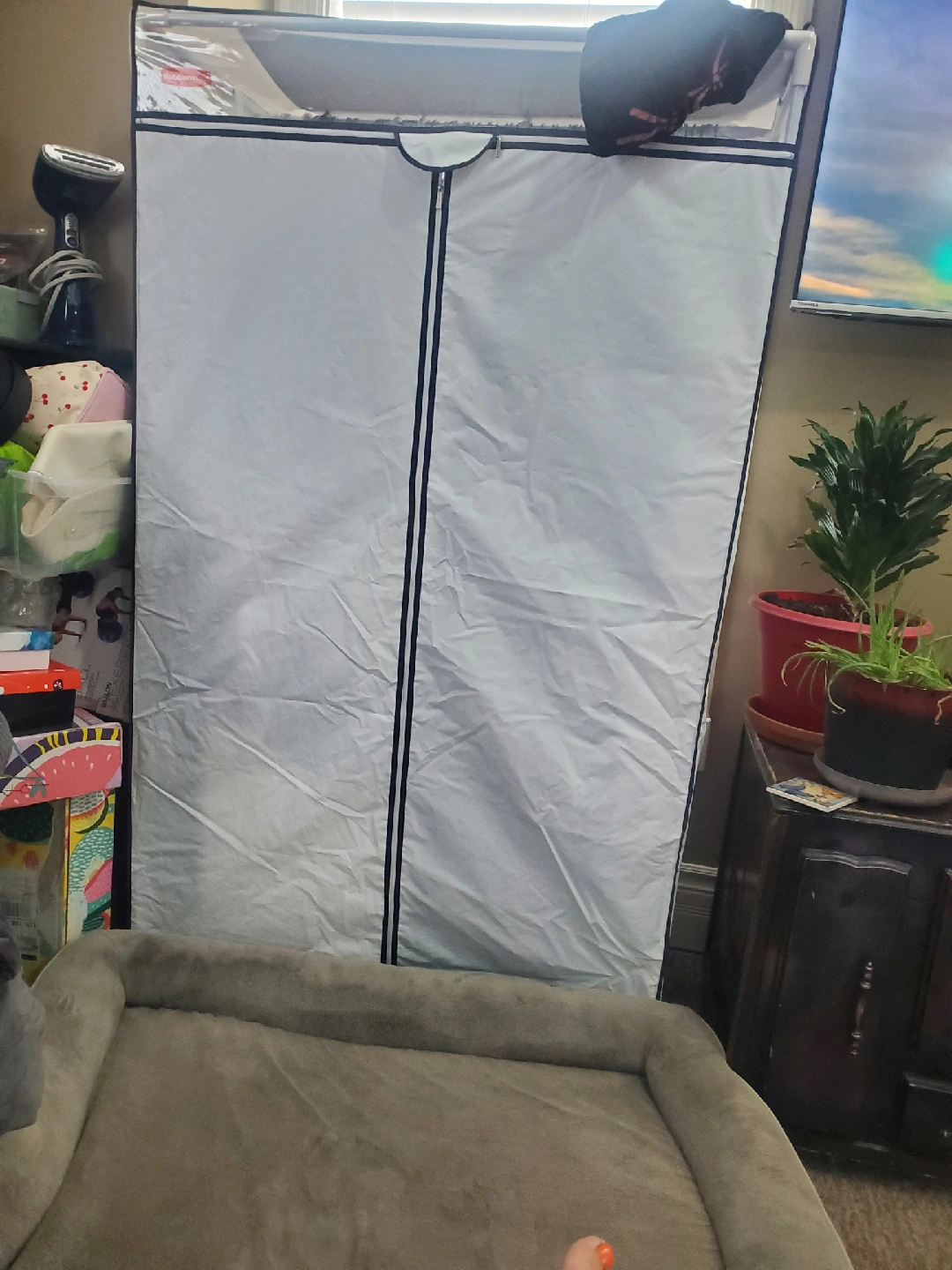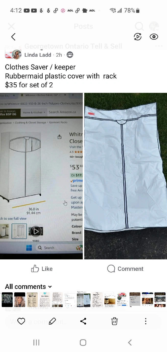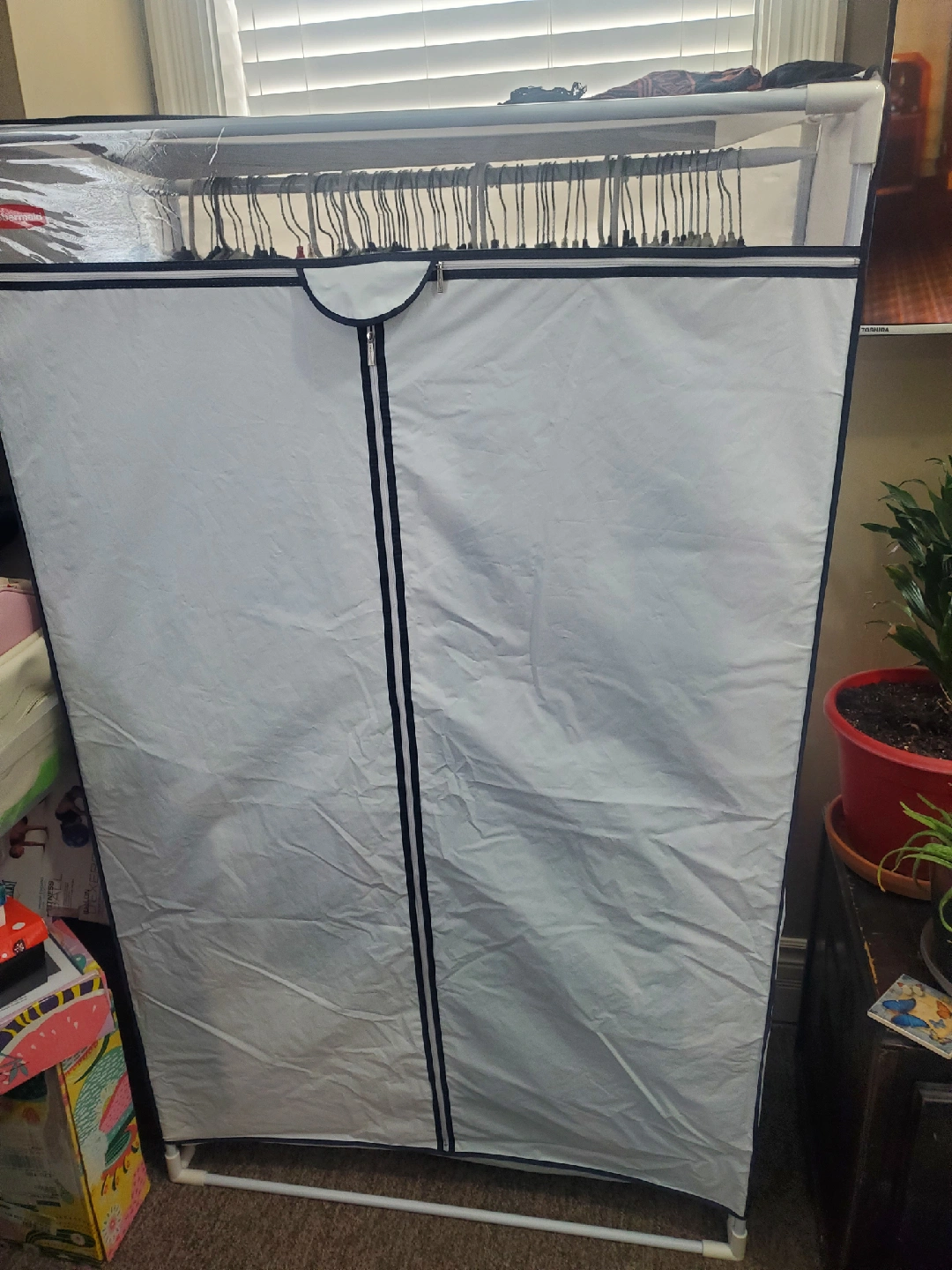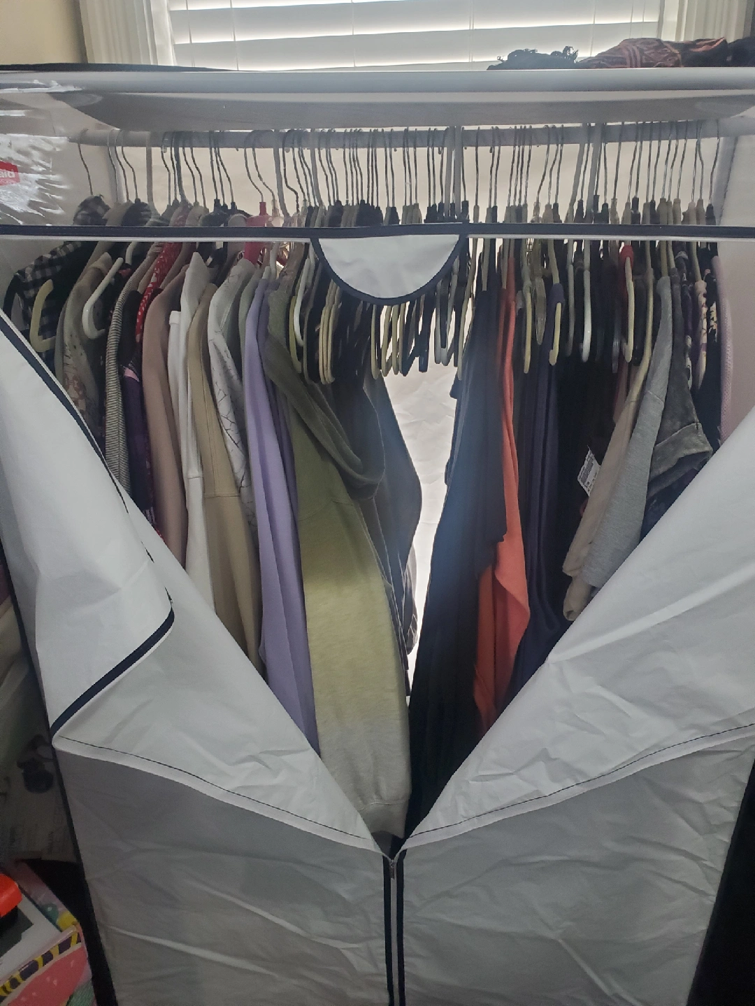 Selling a clothes saver/keeper with a Rubbermaid plastic cover and rack. It's in great condition and ready to help you organize your clothes! The dimensions are 36.0 in x 91.44 cm.
