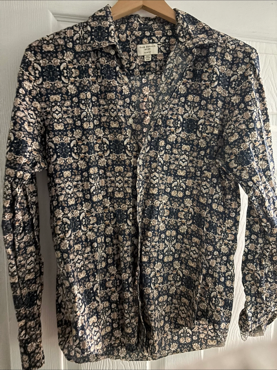 Selling a Club Monaco slim fit button-down shirt in size M/M. It has a nice pattern and is in great condition!
