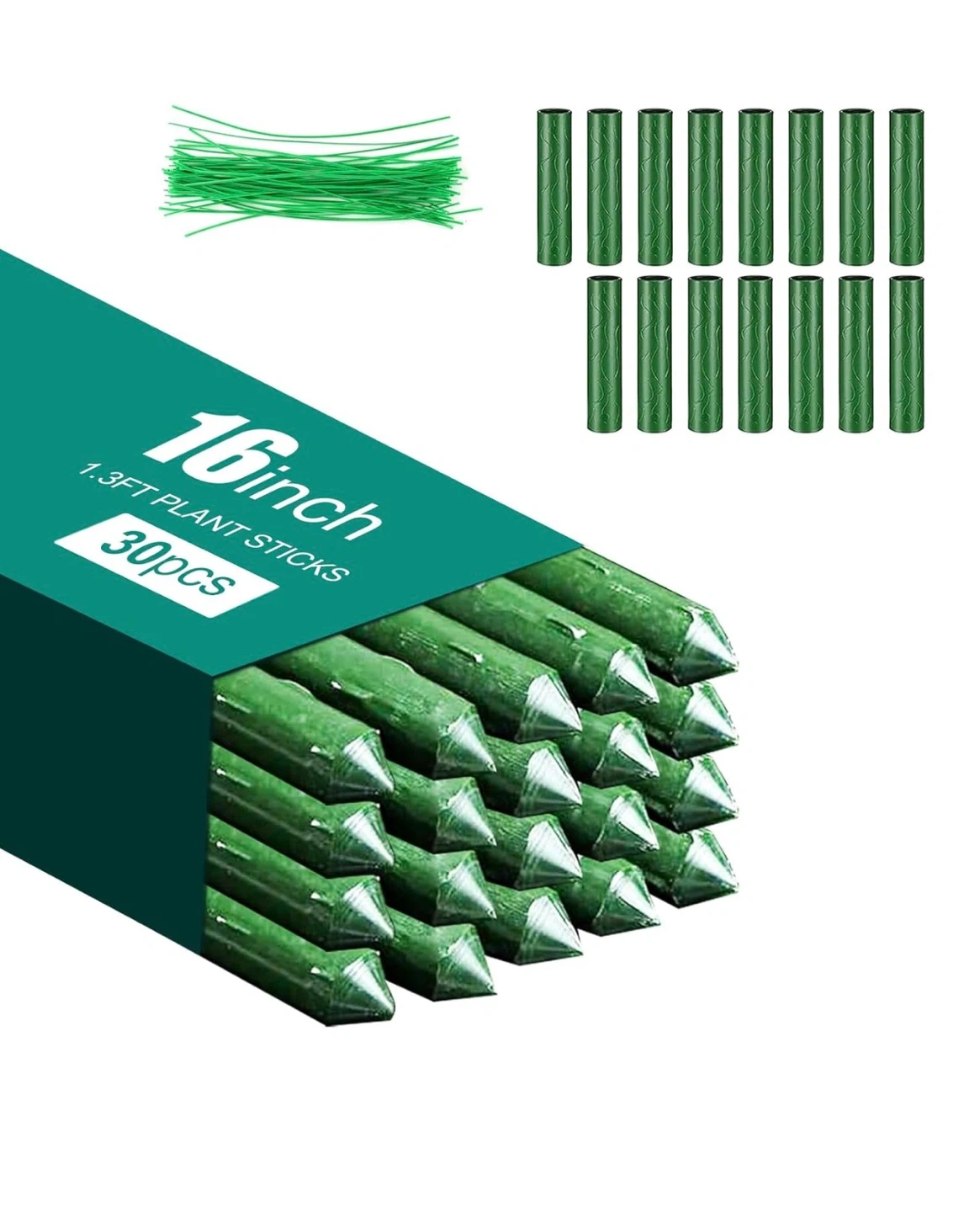 Get your garden growing with these Cludoo garden stakes! This set includes 30 plant sticks, each 16 inches long. They're made with a steel inner core and plastic coating, plus a non-slip bump design to keep your plants secure. These stakes are strong, stable, durable, anti-aging, and reusable, making them a great choice for your garden. Originally $27.99!