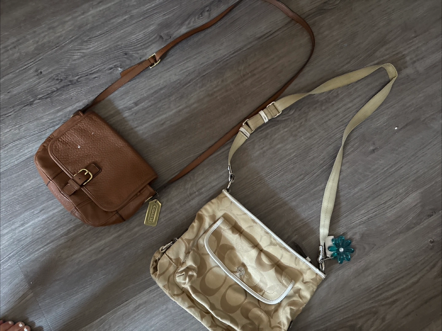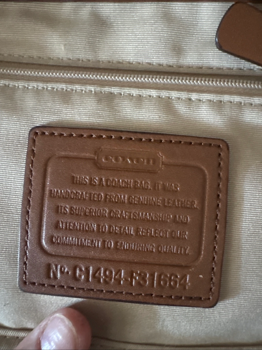 This is a Coach brown leather crossbody bag. It features genuine leather craftsmanship and attention to detail. The model number is C1494-F31664. It's a stylish and practical bag for everyday use!