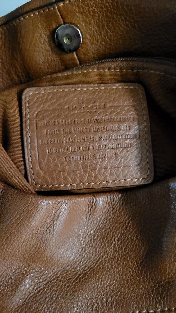 This is a beautiful Coach shoulder bag in brown leather! It's in great condition and ready for a new home. The bag features a spacious interior and a convenient zippered pocket for your essentials. Perfect for everyday use or a night out
