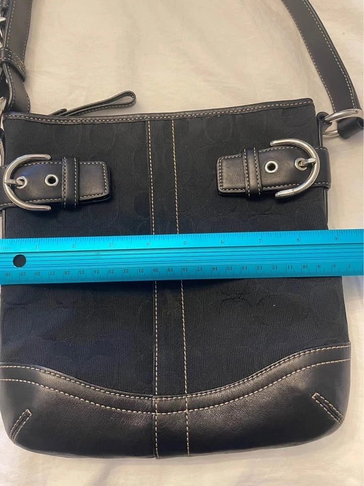COACH BLACK SIGNATURE CANVAS & LEATHER SLIM DUFFLE SHOULDER BAG VINTAGE 3577 Only $120 Signature jacquard Zip closure, fabric lining Strap with 9" drop 9" (L) x 9 1/2" (H) Coach Style # 3577 Excellent Condition like new Pick up near Bathurst and Steeles in Thornhill