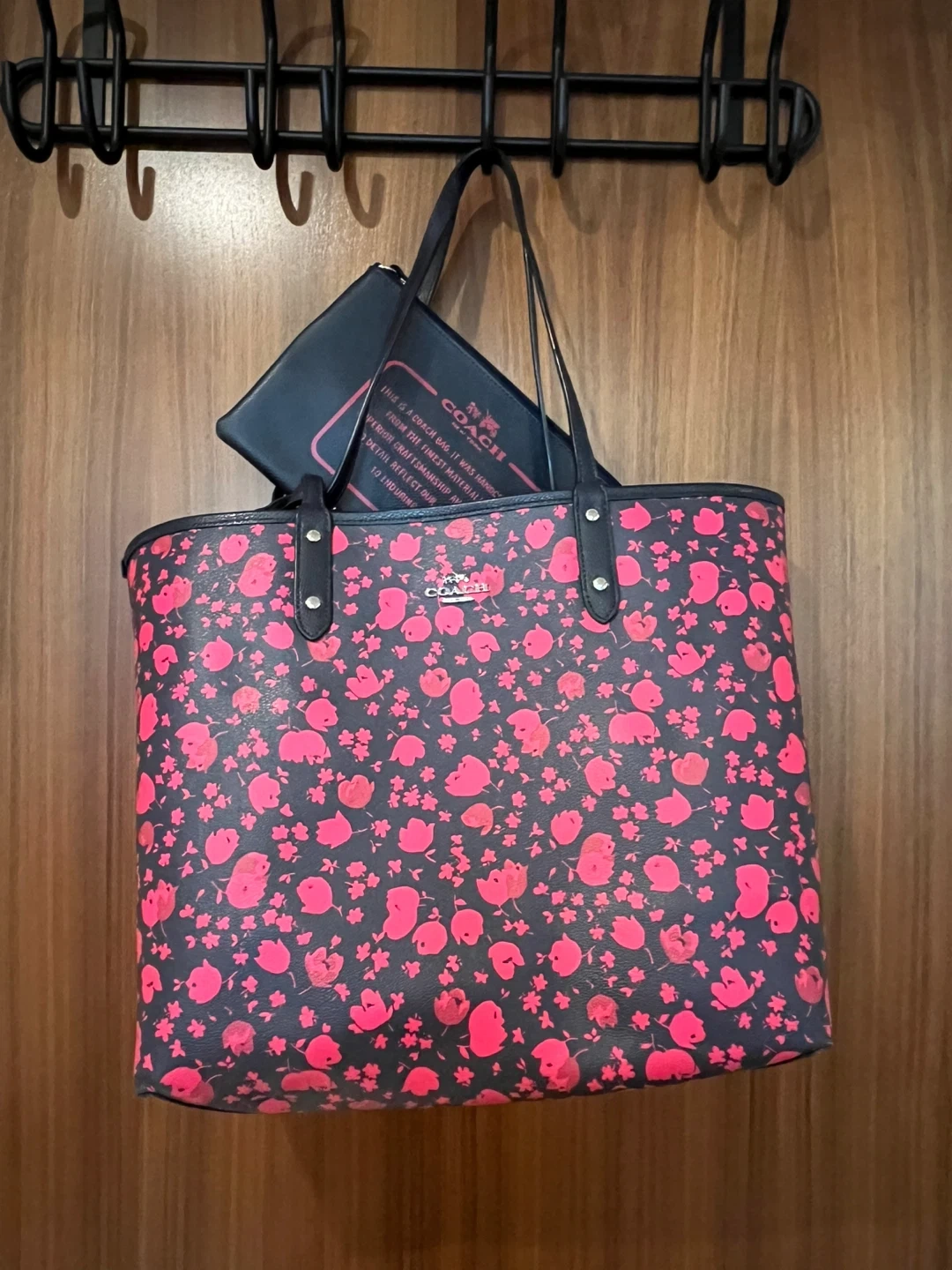 Selling a Coach tote bag with a vibrant floral print! It comes with a matching pouch that can be used separately or attached to the tote. The tote is in great shape and perfect for carrying all your essentials. 💕🌸