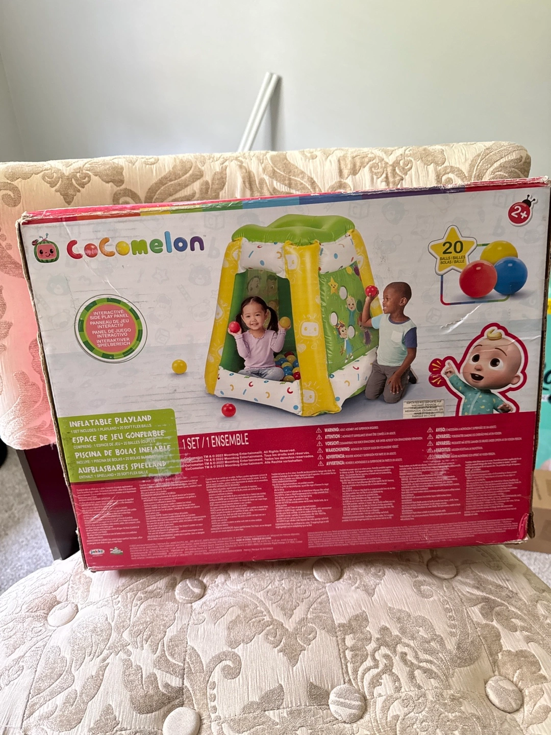 Selling a CoComelon inflatable playland! It's perfect for kids aged 2 and up. Includes 20 play balls for interactive fun. It's an inflatable play space for hours of entertainment. Get ready for some CoComelon adventures! Brand new never used, was a gift to me but won’t plan on using it.