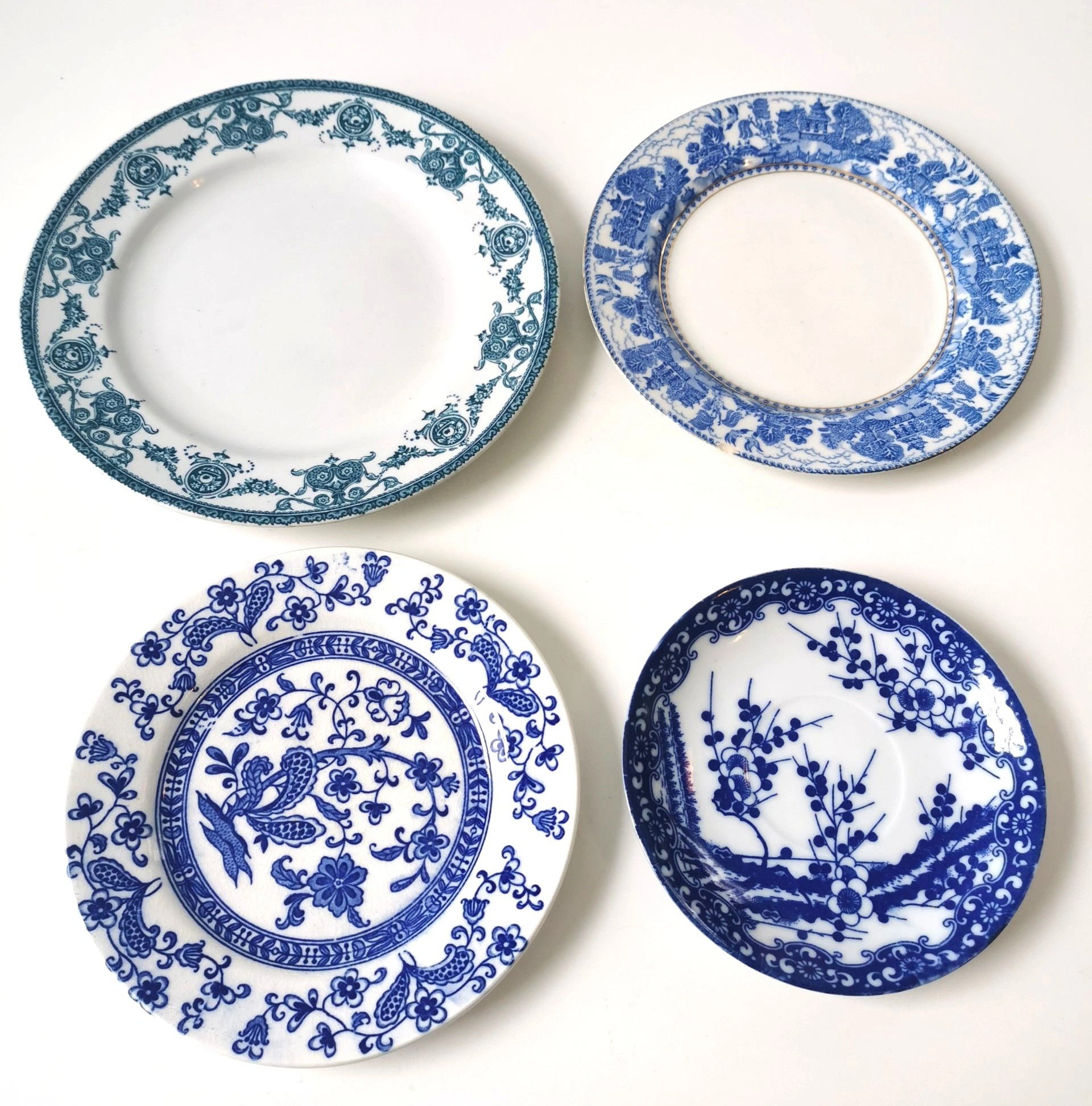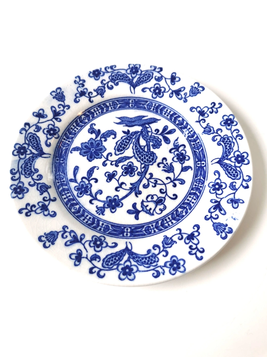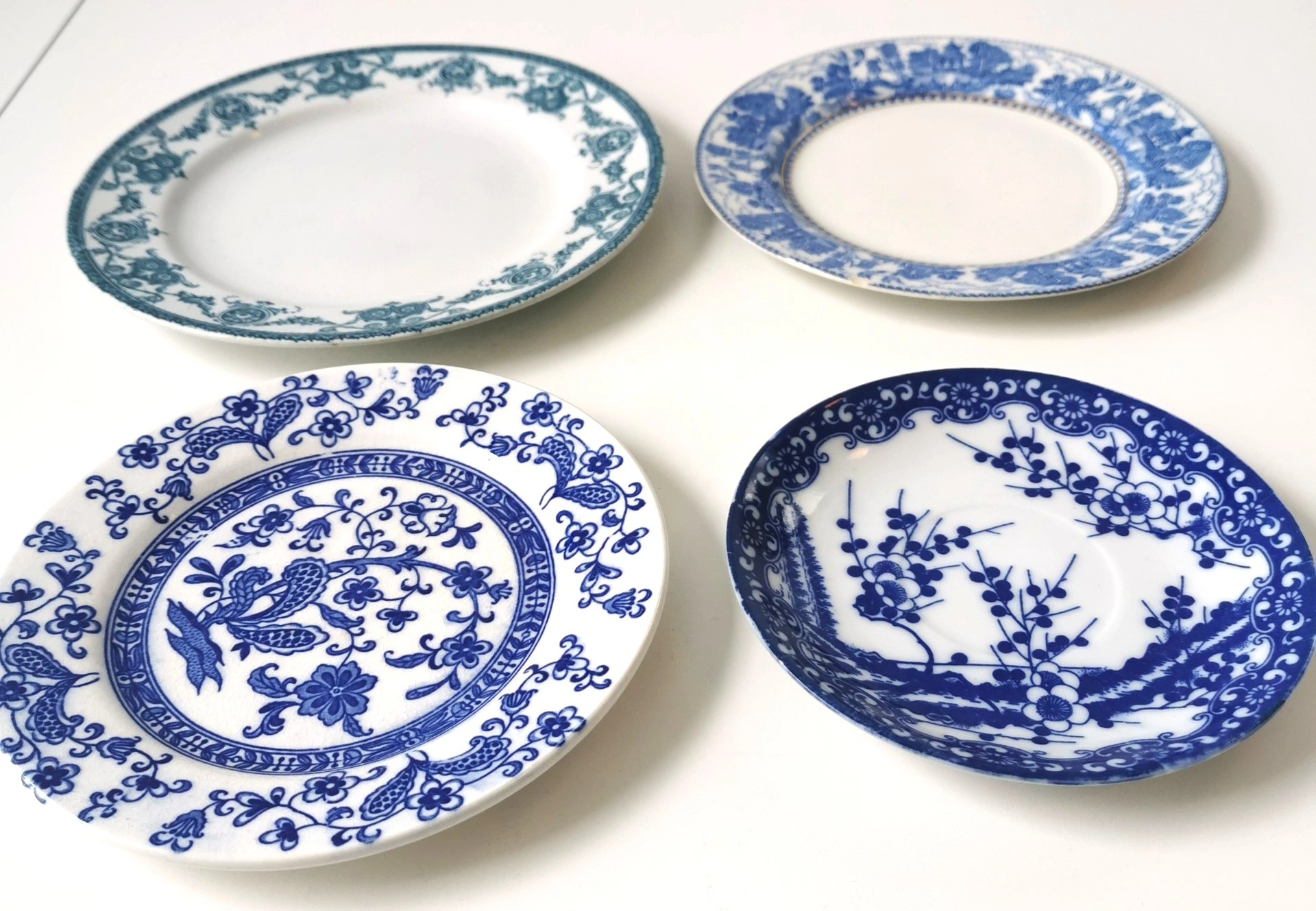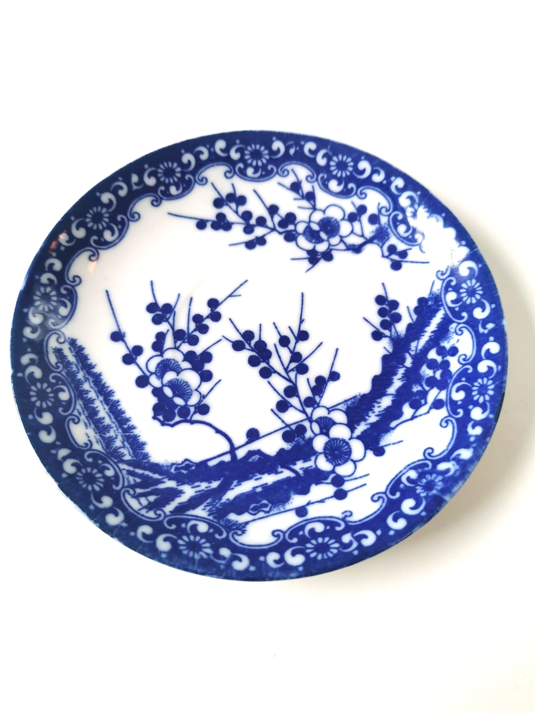 Delve into the elegance of these vintage collector plates, a treasured quartet that captures the essence of both Japanese and English artistic traditions. Each plate boasts a unique design, vividly painted in a palette that celebrates the rich cultural heritage of its origins. The set includes two pieces from each tradition, offering a harmonious display of craftsmanship and history. Whether showcased on a wall or cabinet, these plates serve as a testament to the collector's appreciation for fine ceramics and cultural artifacts. They stand as an invitation to discerning eyes, inviting a place in your home where their intricate narratives and timeless beauty can be admired and cherished. Details from Smallest Two Plates Japanese to Largest two plates English: Blue and White Plate Japenese Dimensions- 5.25 inches Likely from "occupied Japan" after World War 2. Porcelain Blue Cherry Blossom Pattern on a white background, saucer for tea cup, Traditional Japanese Light Blue and White Plate made in Japan Dimensions- 6 inches showcases a blue botanical pattern. Light Blue and White Plate Made in England Dimensions- 6.75 inches Myott Son & Co "Ye Olde Willow" plate. Blue willow pattern vintage. Dark Blue and White Made in England Dimensions- 7.5 inches Keeling & Co England Losol Ware Platter in the Duke Pattern features floral and scroll motifs. NOTE: All four plates vintage older items, three plates in good conditon slight wear, Myott Son and Company England plate good condition does have a small ship as noted in photos. Please reference photos for all