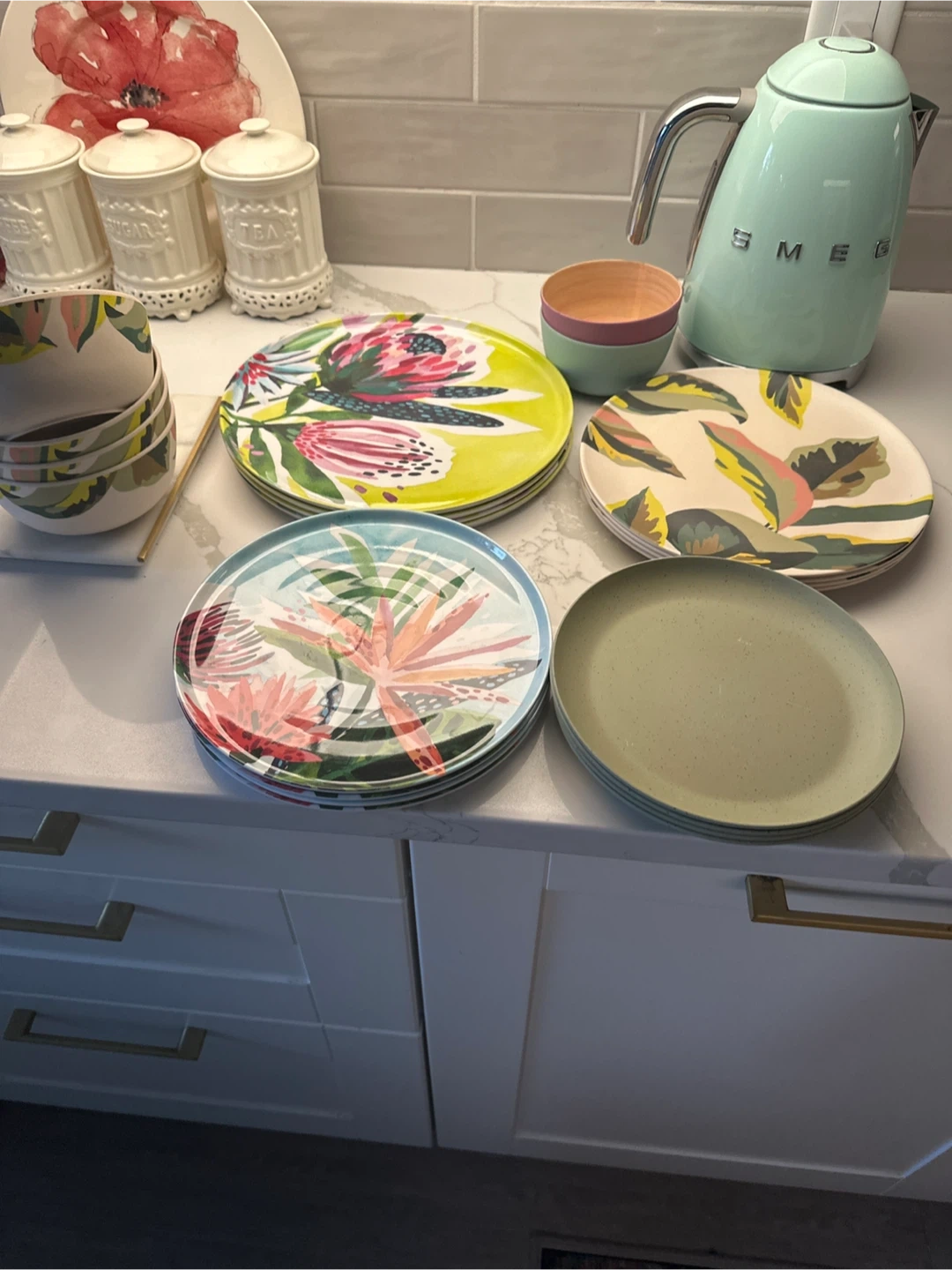 Selling a set of decorative plates with various colourful floral designs. They would look great on display or used for serving. They are in good condition and ready for a new home!