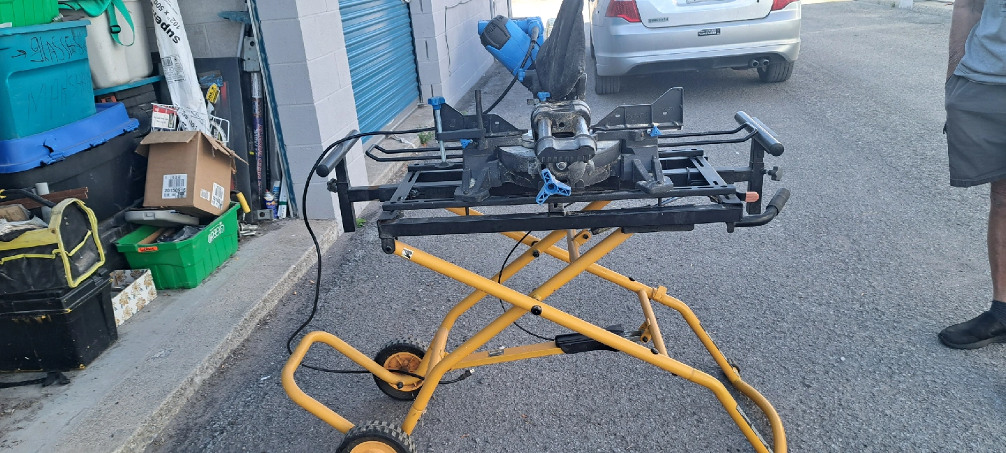 Mastercraft compound sliding miter saw with a laser sight and Dewalt stand, 10 inch blade,