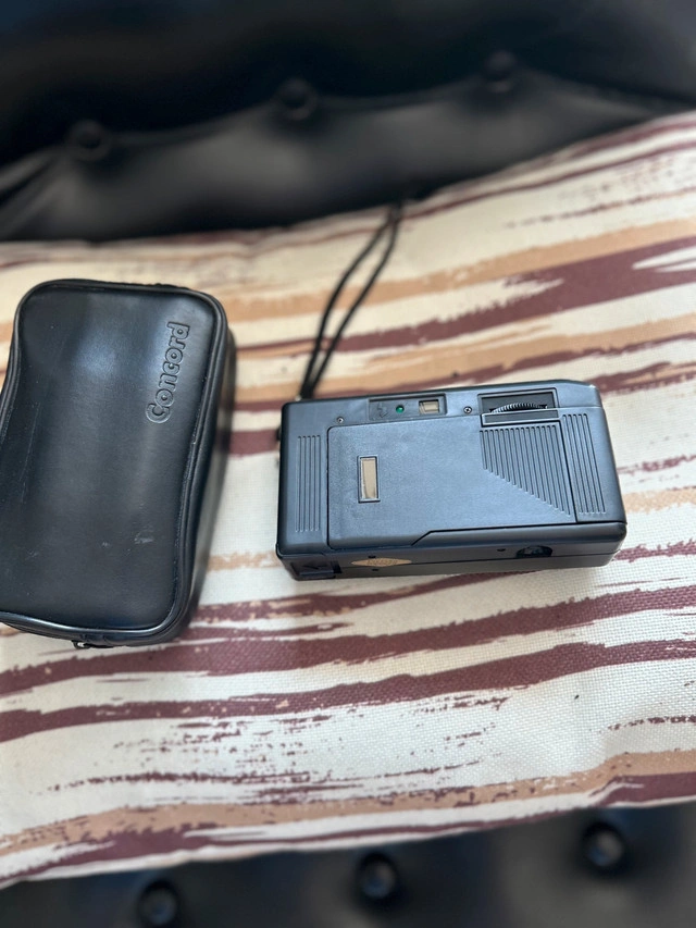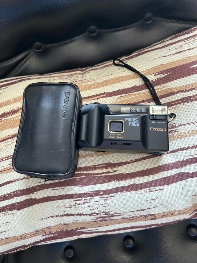 Capture memories with this vintage Concord focus-free 35mm film camera, a blast from the past. This used camera comes with its original case.