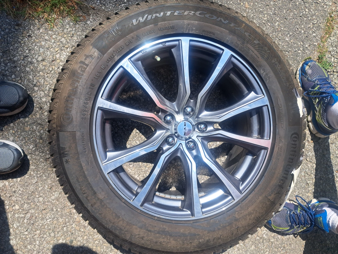 Selling a set of Continental WinterContact tires, size 245/60R18. They are showing signs of little wear but still have some life left in them. Perfect for winter driving! Amazing rims.