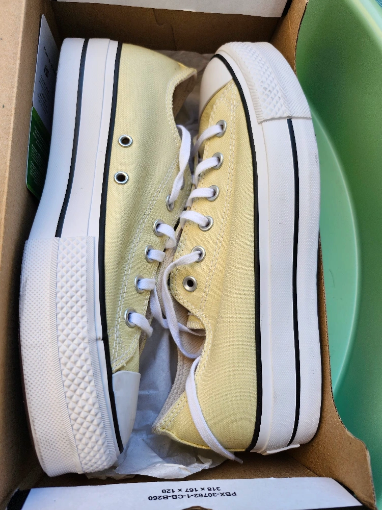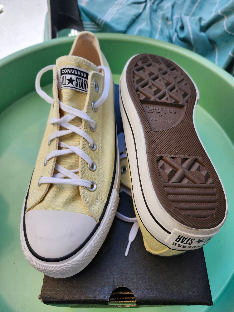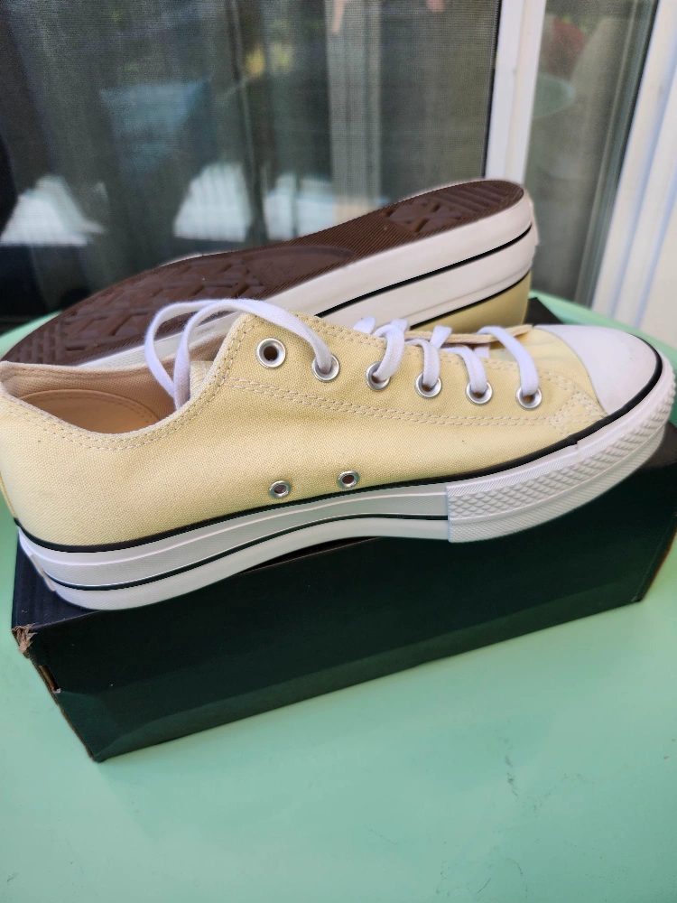 Selling a pair of Converse CTAS Lift OX stacked sneakers in a lovely lemon drop colour! They are a women's size 10. The box is included! Never worn.