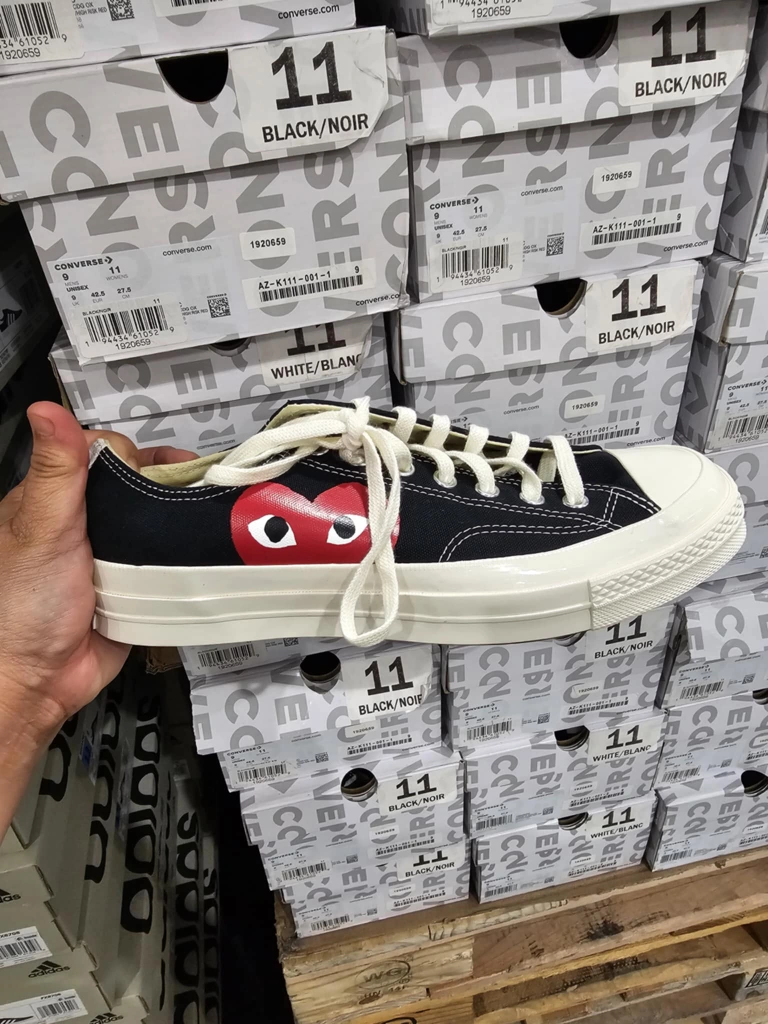 Selling a pair of Converse x Comme des Garçons PLAY Chuck 70 Low sneakers in black. They're in great condition and size 11. The classic design with the iconic heart logo is sure to turn heads!