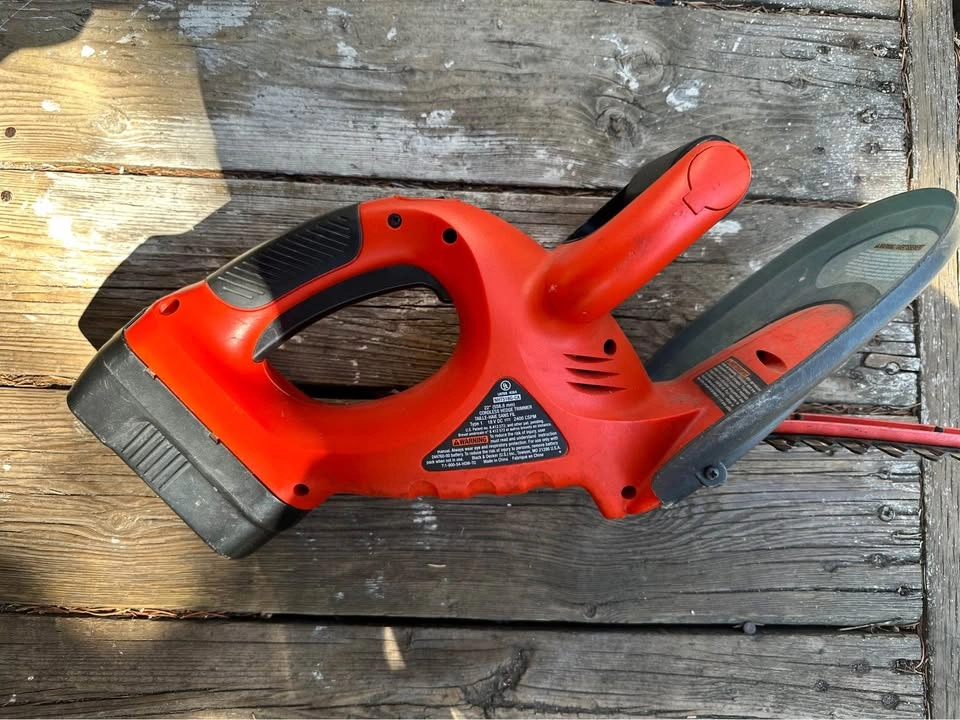 It's used working condition. One battery holds a charge; the other isn't very good but still works. It’s a cordless 18v hedge trimmer with two batteries and one charger. Pickup only @ Glynn rd ajax