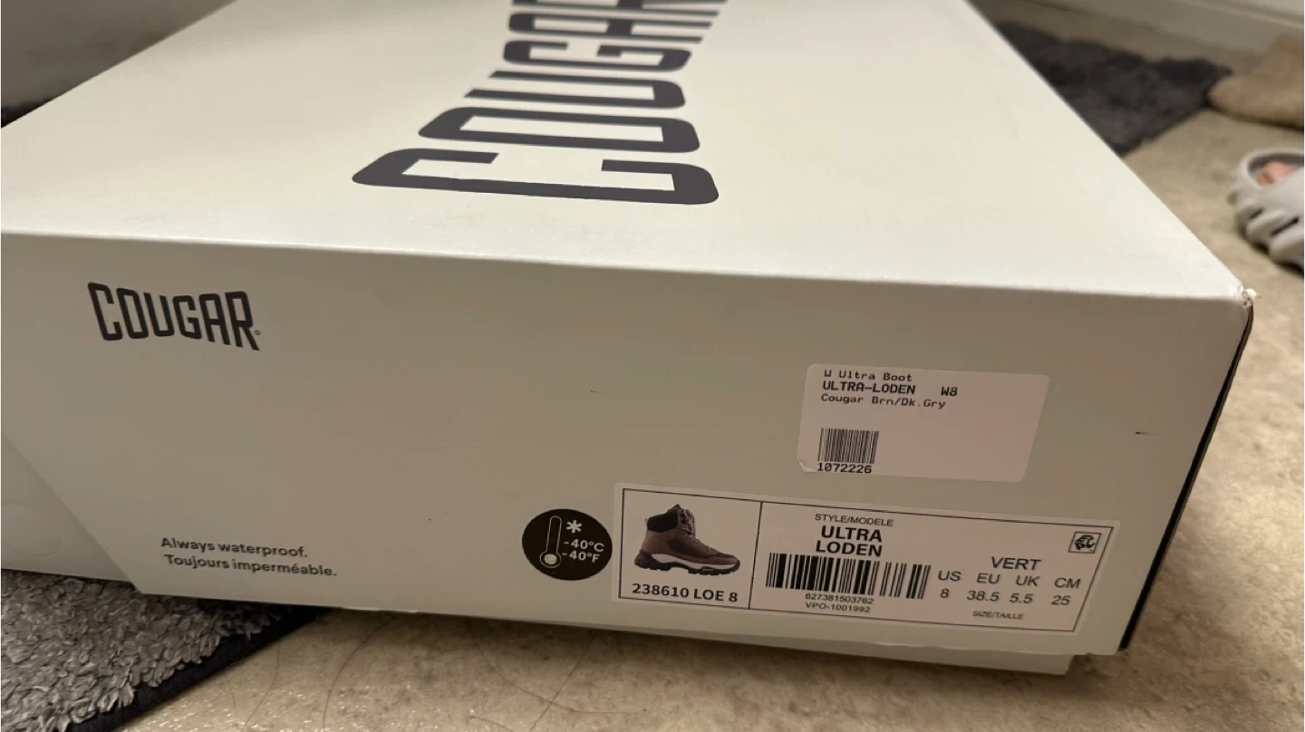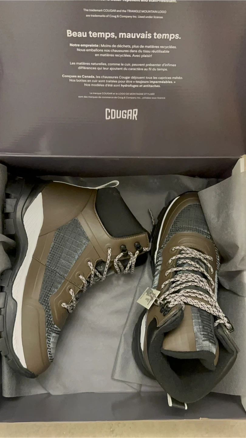 Selling a pair of Cougar Ultra Loden boots in size 8. They're brown and dark grey and always waterproof. These boots are in excellent condition and come with the original box