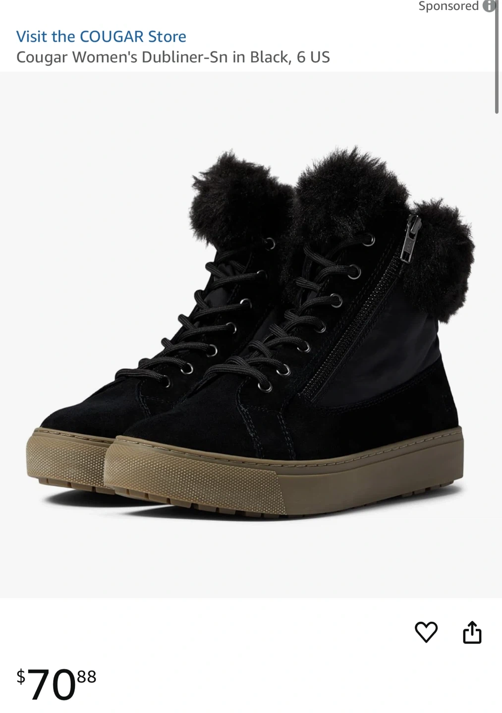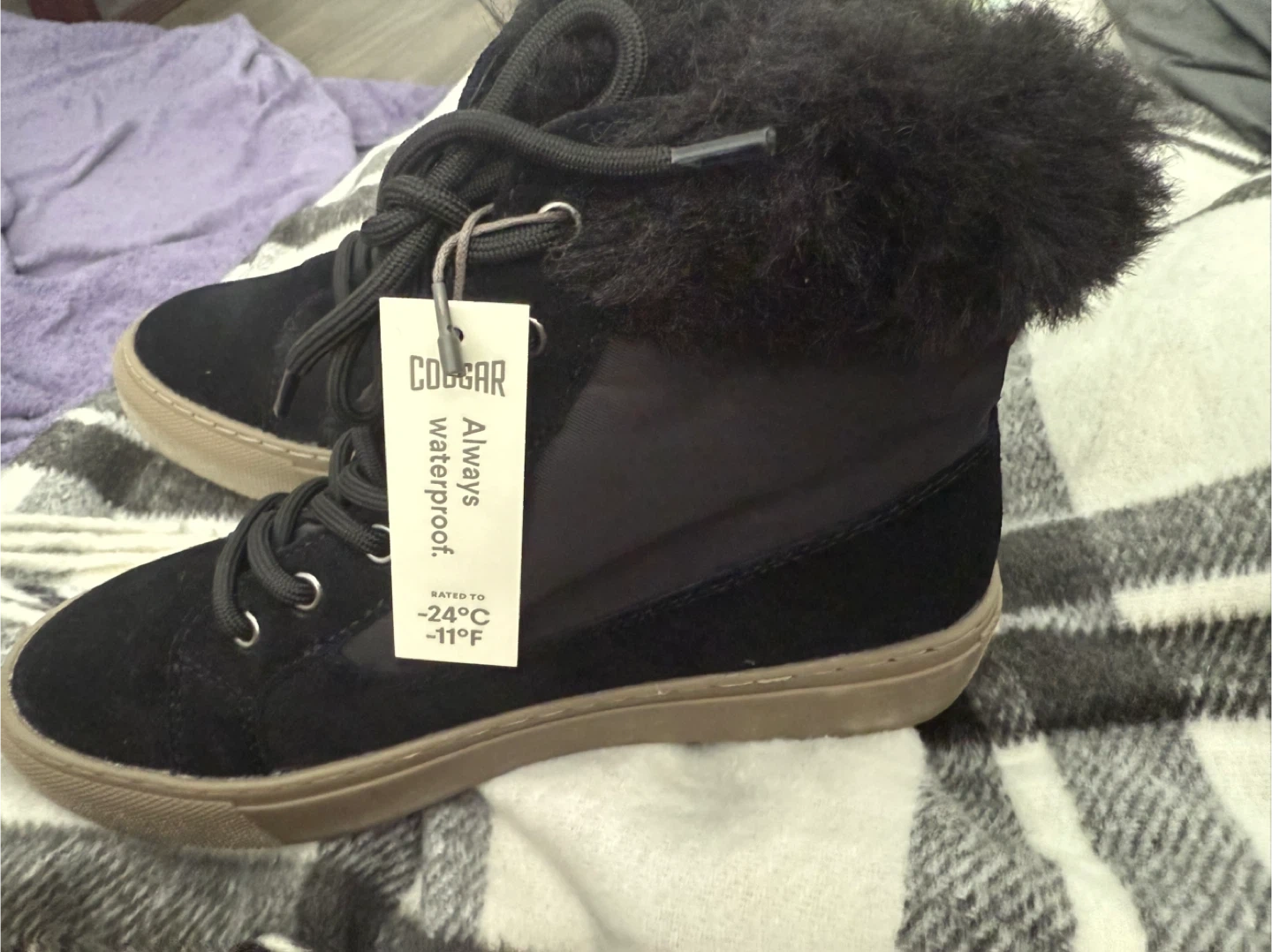 Selling a brand new pair of Cougar Women's Dubliner-Sn boots in black, size 6 US! These boots are always waterproof and rated to -24°C / -11°F. They come with the original tag attached. Perfect for the Canadian winter! Will only meet at Georgetown Market Place