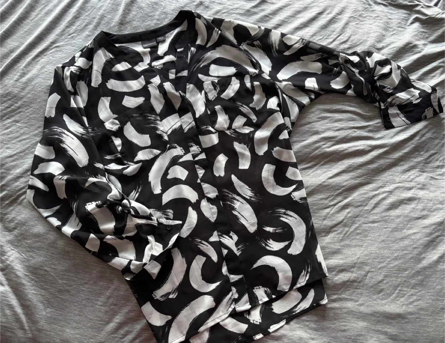 Covington Woman blouse in size 2X. A light black and white material. Perfect for adding a touch of elegance to your wardrobe!